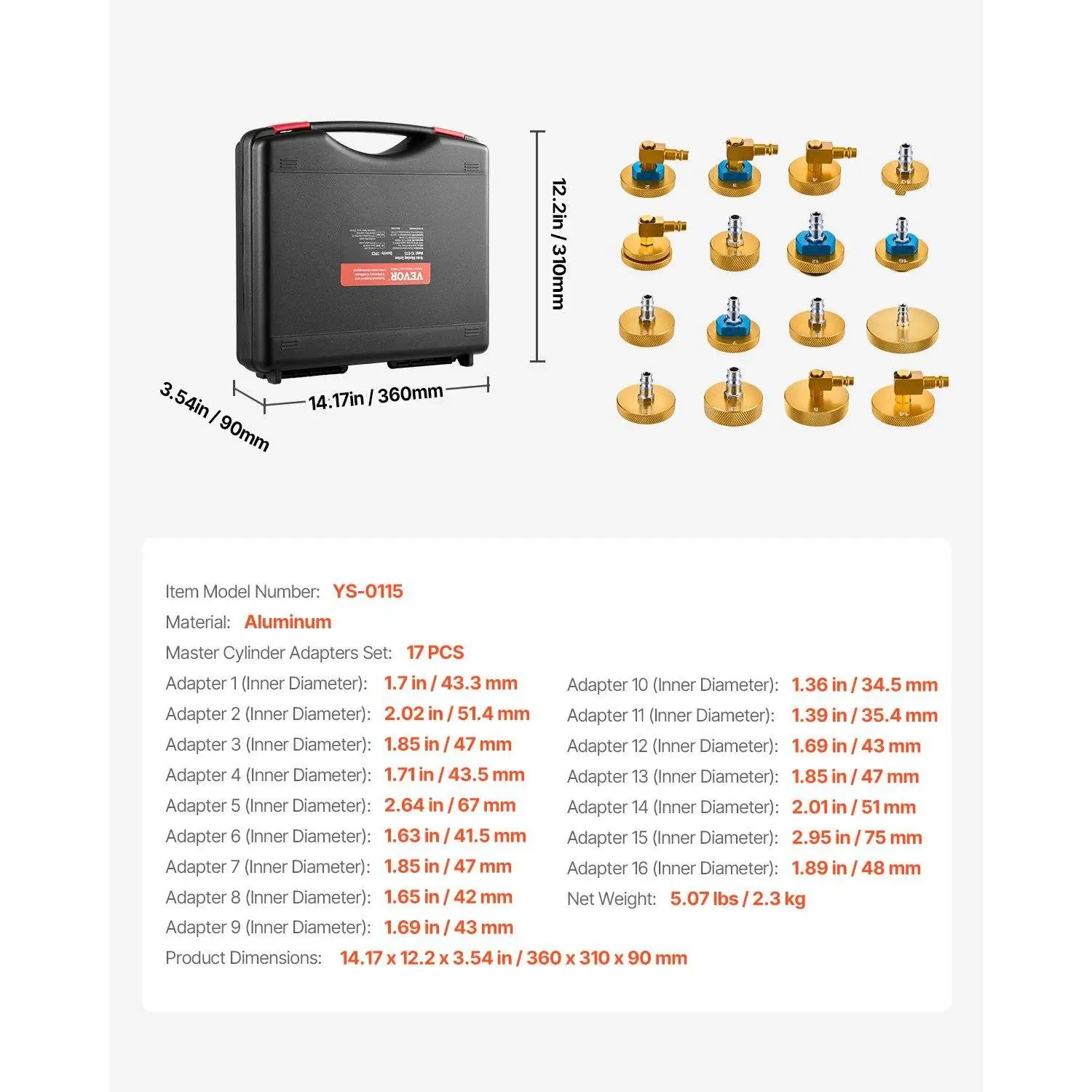 ·Product Specifications: The 17-piece brake fluid replacement adapter set includes round adapters and quick connectors in various sizes. It is compatible with a wide range of vehicles, such as Mercedes-Benz, BMW, Audi, Tesla, Lexus, Land Rover, Jaguar, Porsche, and more.