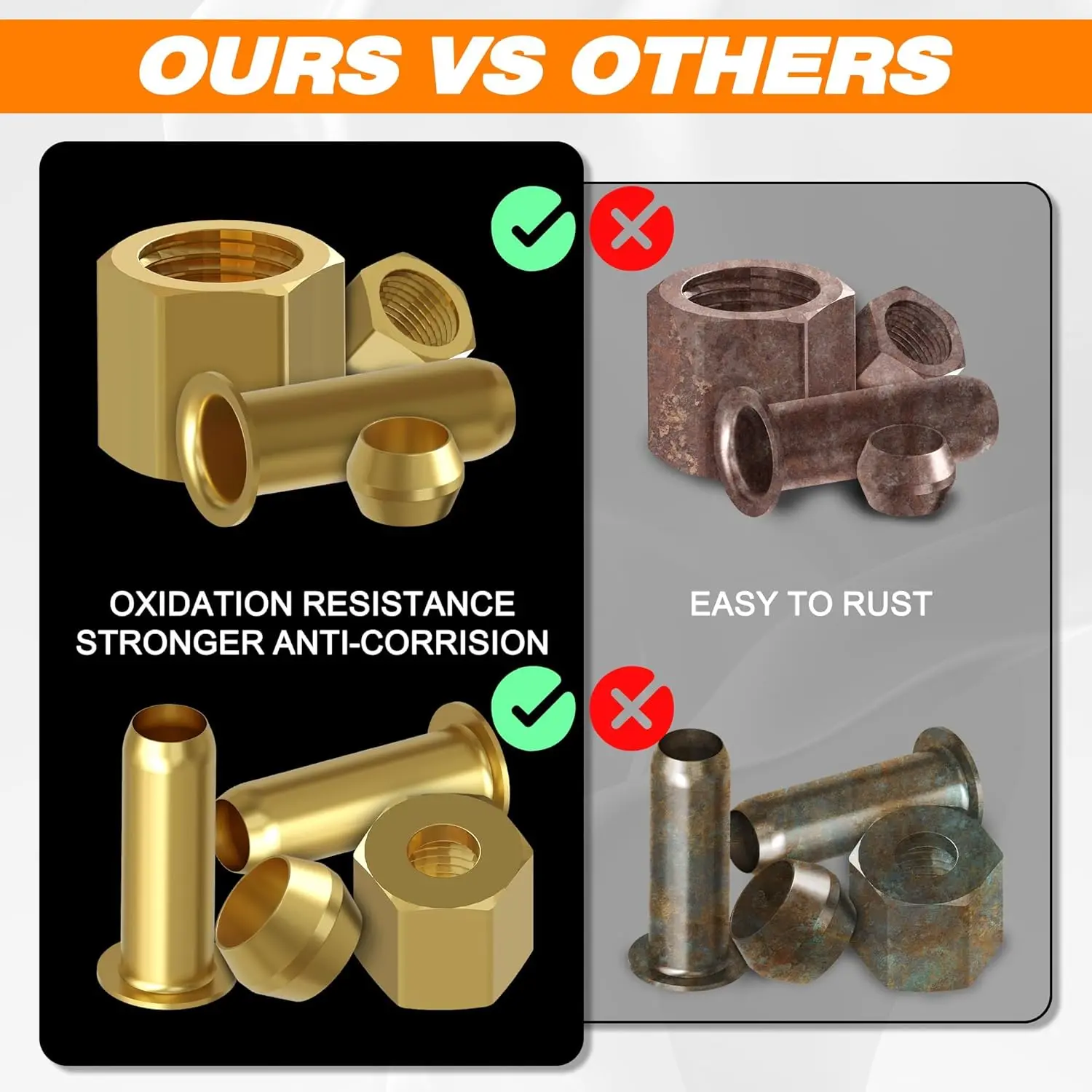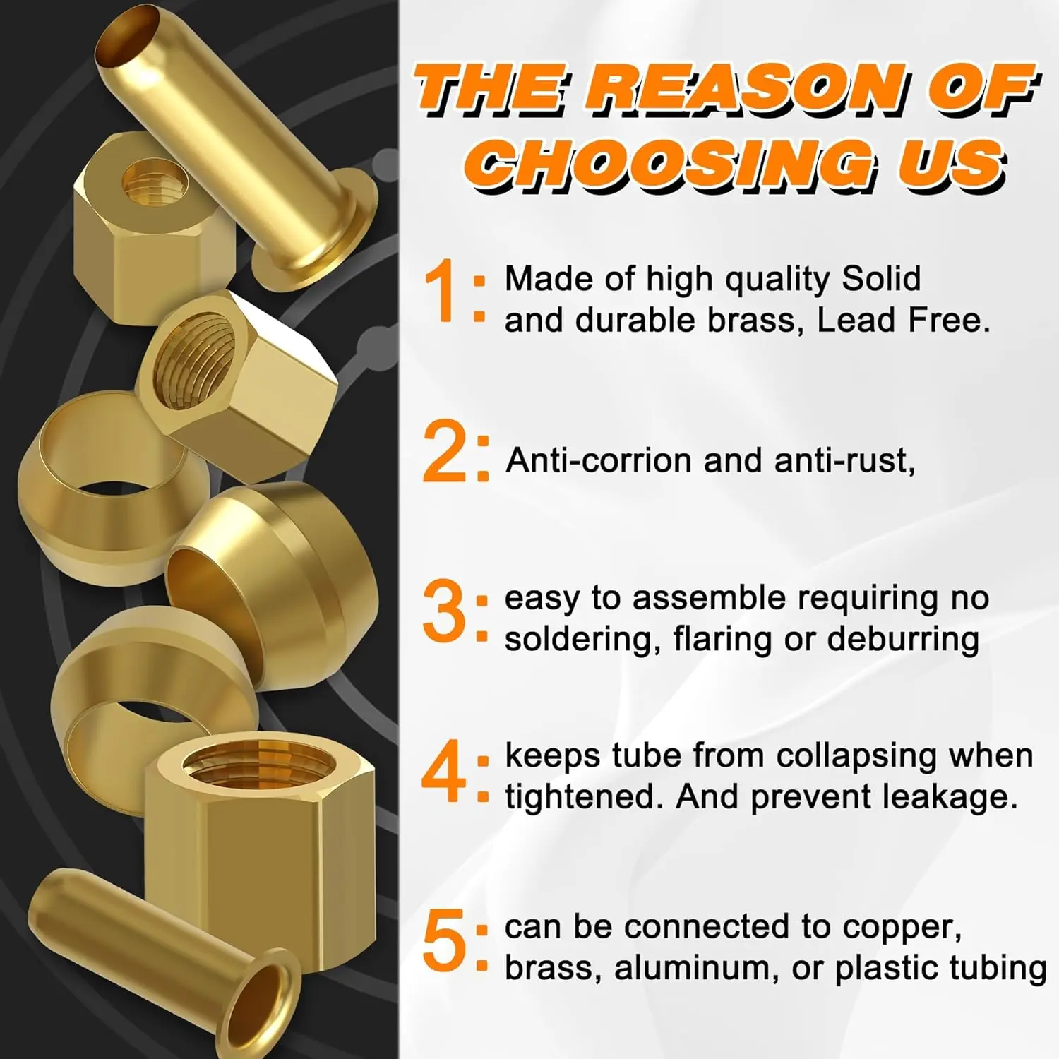 Applications:This brass compression kit can be connected to copper, brass, aluminum, or plastic tubing. No flaring tool is required for assembly.It can keeps plastic tube from collapsing when tightened. And leakage