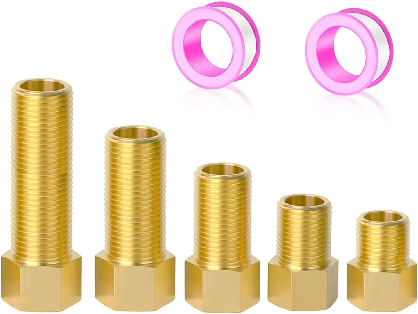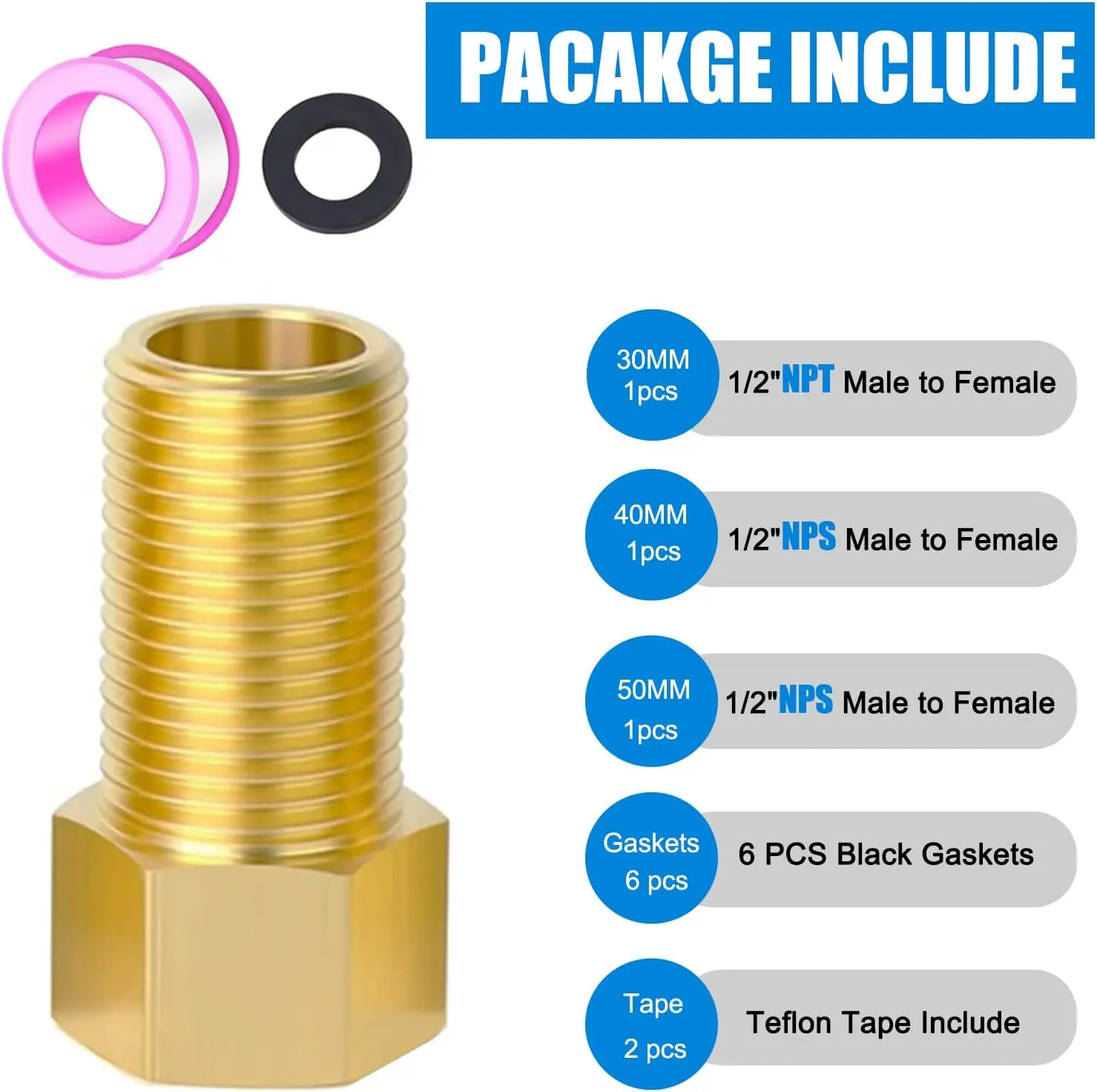 【Package Include】5 PCS different size brass pipe fittings with tapes for your choice. 30mm NPT brass pipe extension x 1; 40mm,50mm,70mm,100mm NPS brass pipe extension x 1; Teflon Tape x 2; Any problem, Welcome to contact
