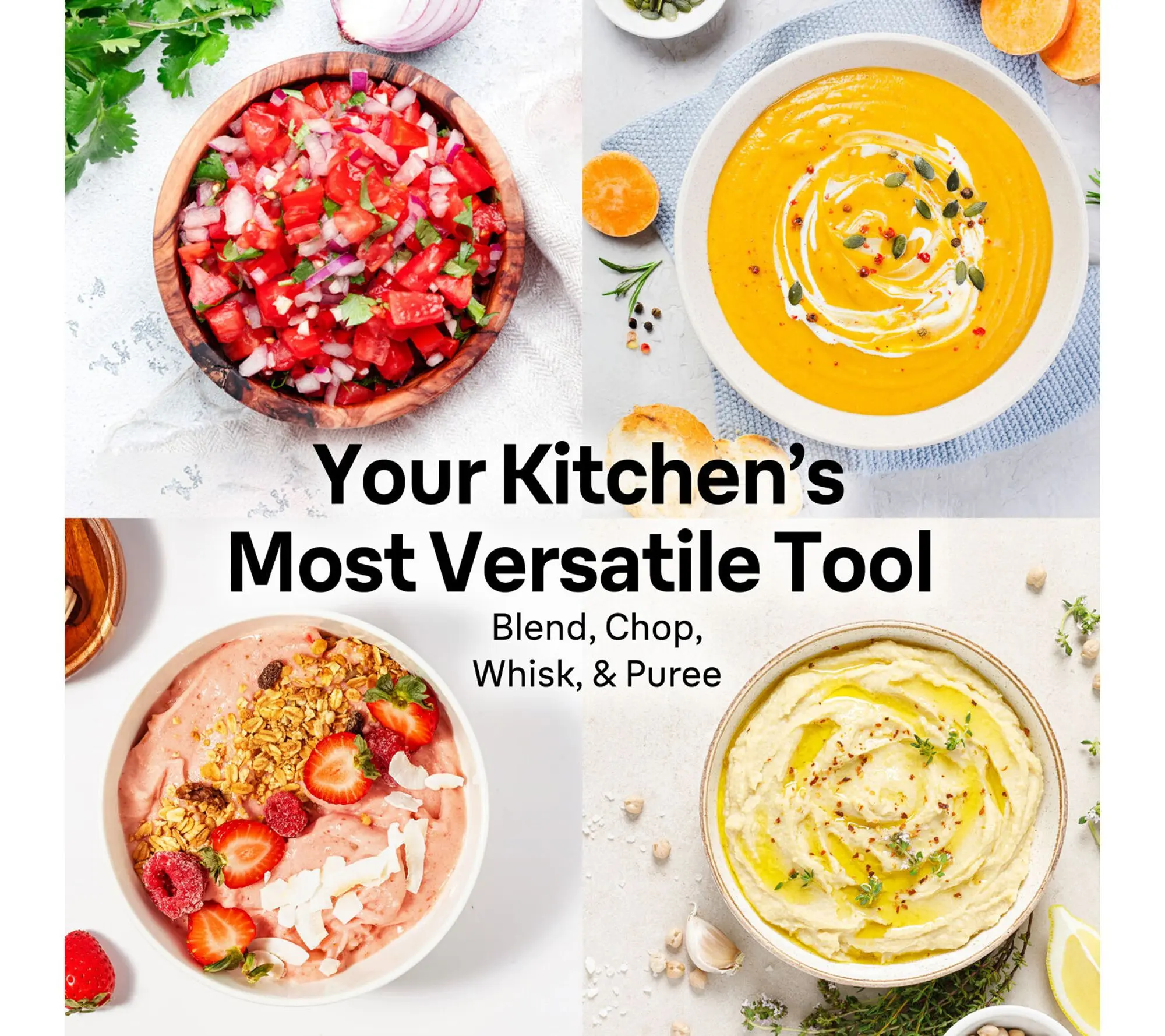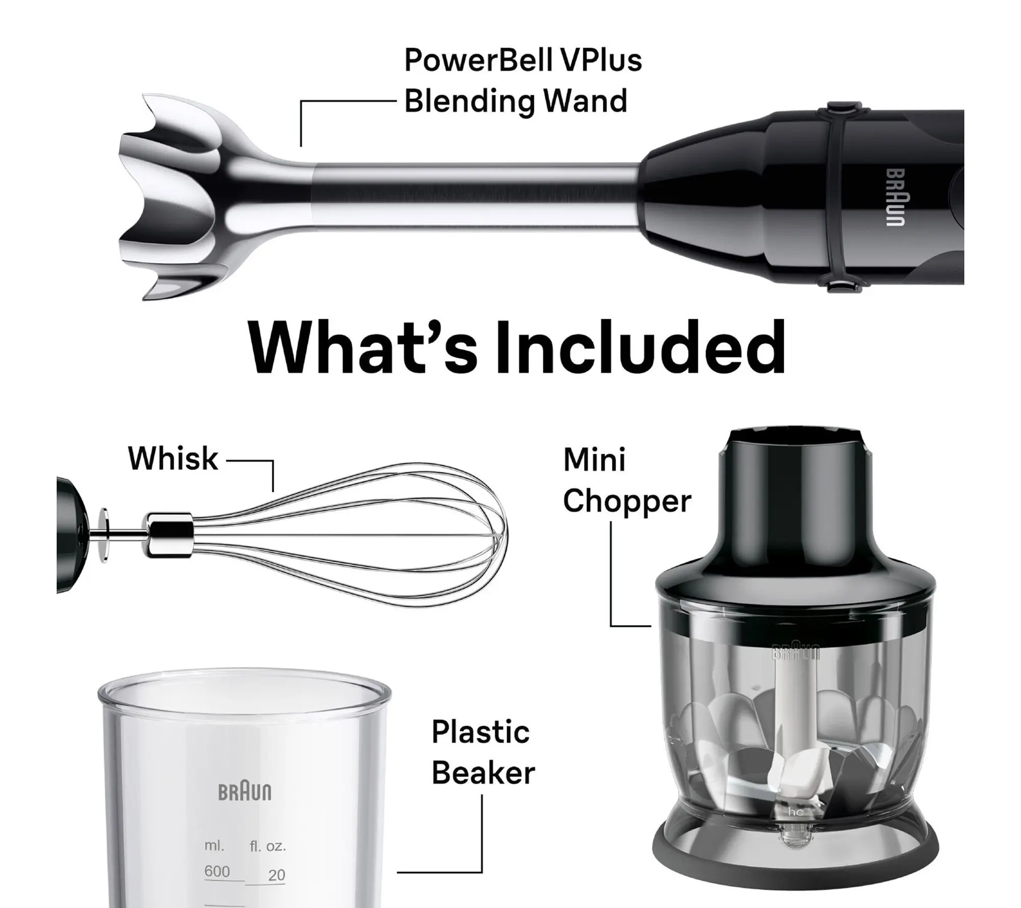 ·Includes hand blender, whisk, mini chopper, plastic beaker, and manual