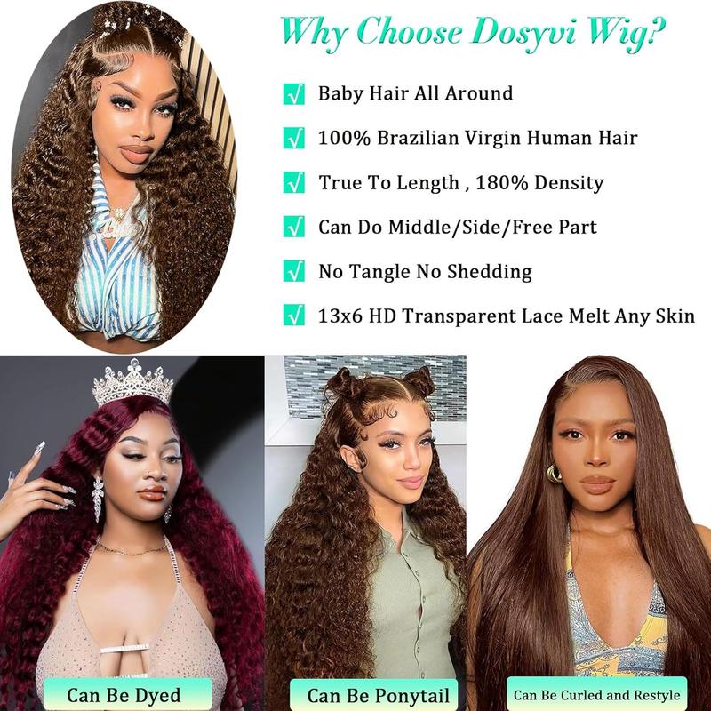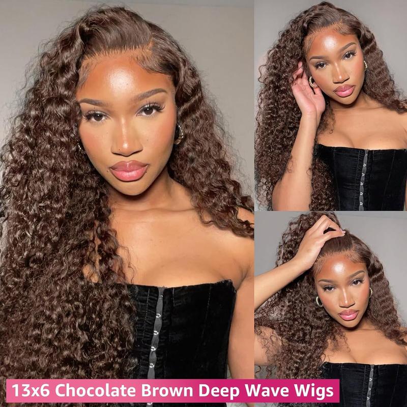 5. Bling Hair Brazilian 13X4 Chocolate Brown Deep Wave Lace Front Wigs Human Hair 13X6 Lace Front Wigs Human Hair Pre Plucked HD Transparent Lace Frontal Wigs For Women