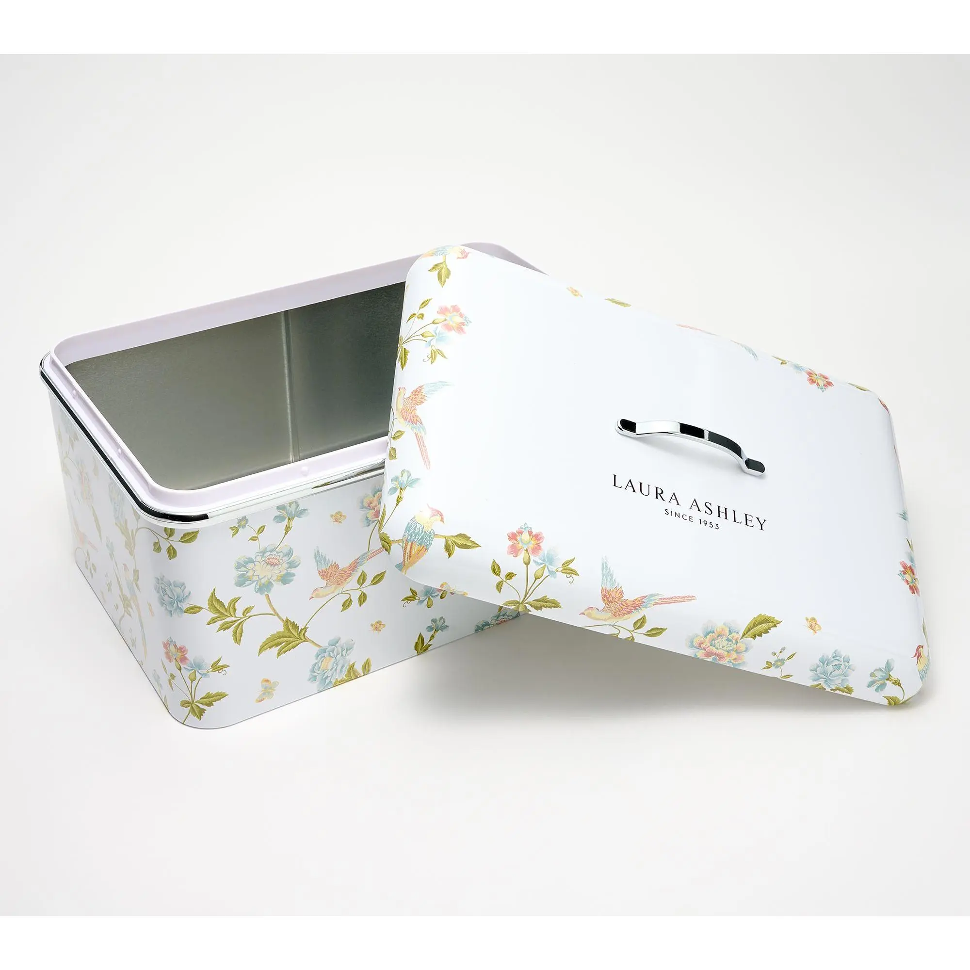 As advertised. Beautifully designed large tin bread box. Holds 2 side by side store bought loaves with room to spare for biscuits, scones or muffins on top.