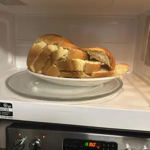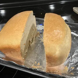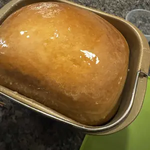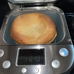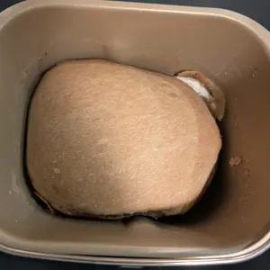 Remove bread pan from baking chamber by grasping the handle, turning the pan counterclockwise and lifting up. It may be helpful to first lift the handle of the bread pan by using the pan hook.