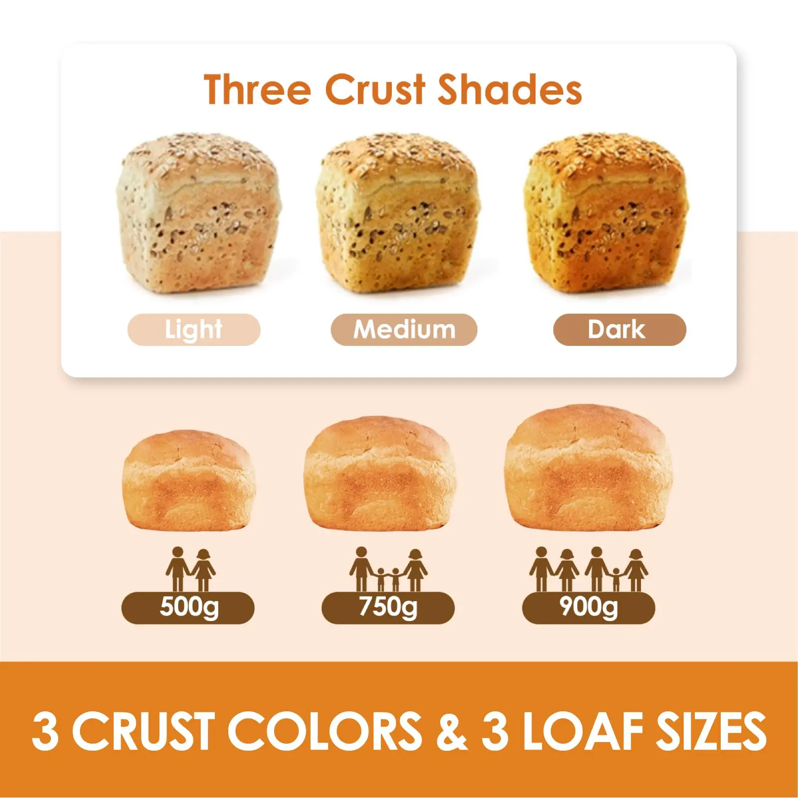 ·15 H Timer & 1 H Keep Warm & Gluten-Free & 3 Loaf Sizes & 3 Crust Colors