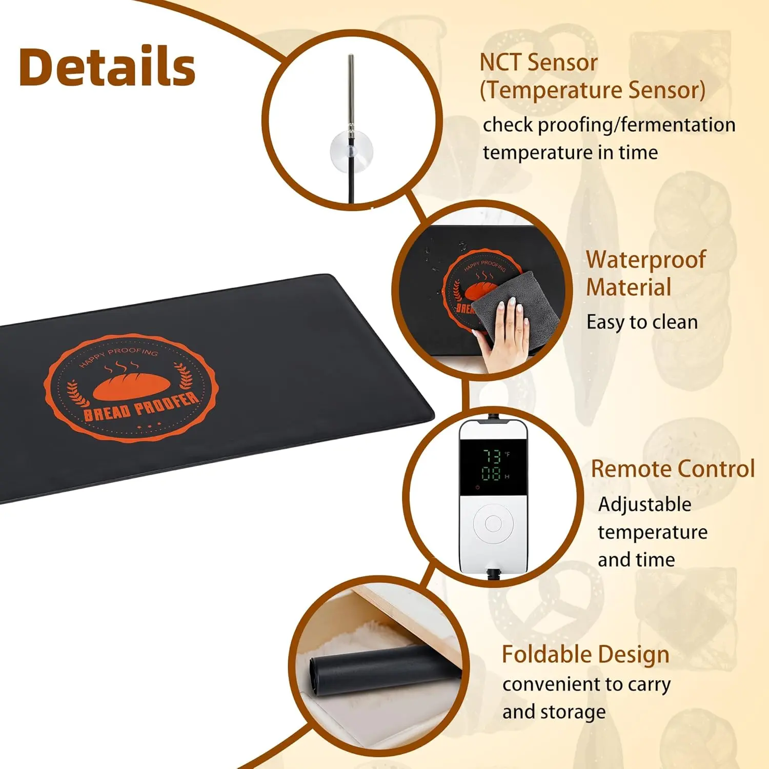 【】The bread warmer mat is water resistant. When cleaning the heating pad, you can wipe it with a wet towel. 10.6" x 21.6" the size for dough fermentation.