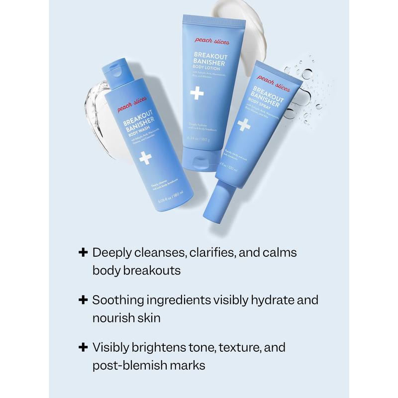 • Breakout Banisher Body Lotion – lightweight hydration and calm