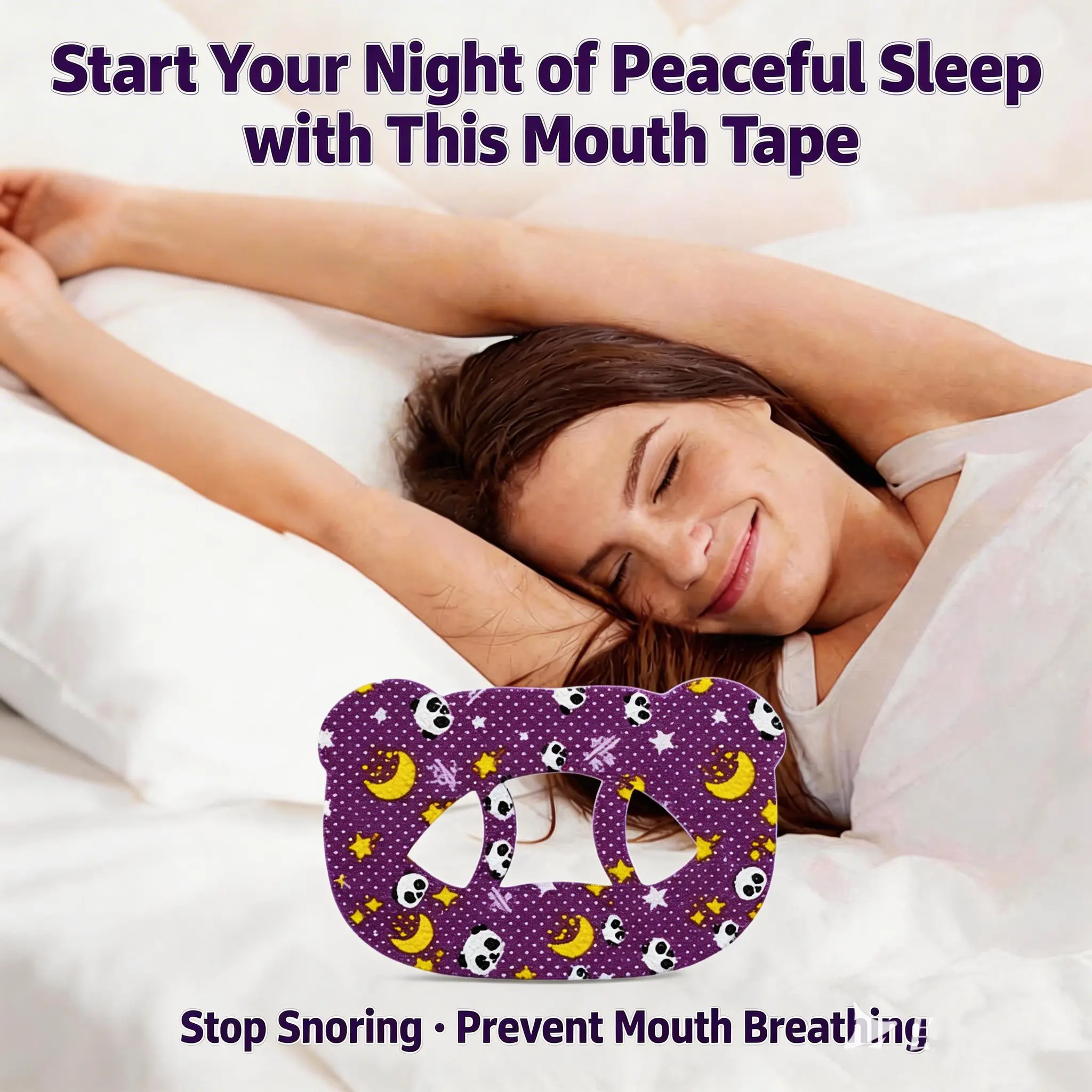 "Stop snoring and wake up feeling energized! These comfortable mouth tapes guarantee a quiet night. Grab your box right now!