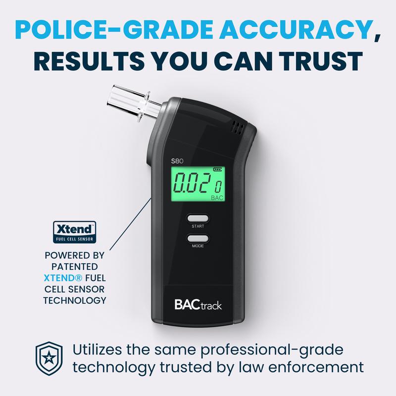Powered by BACtrack's largest Xtend Platinum Fuel Cell Sensor, the BACtrack S80 Professional Breathalyzer is the most accurate breathalyzer in the BACtrack family, delivering reliable BAC results, with police-grade accuracy.