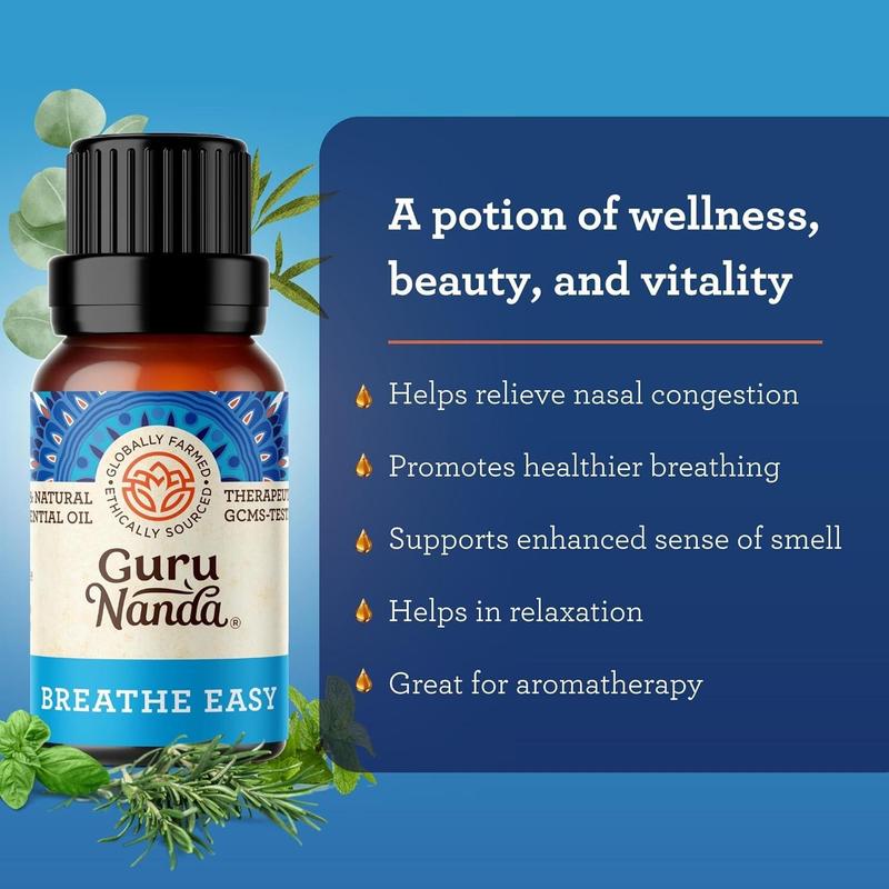 PURE & NATURAL BLEND: Crafted meticulously, GuruNanda Breathe Easy Essential Oil consists of pure and natural ingredients, including Eucalyptus, Peppermint, Basil, Tea Tree, and Rosemary essential oils, sourced from all around the world, capturing the true essence of nature. Each bottle is encased in a 0.5 Fl oz amber glass bottle with an oil dropper. Free from additives or fillers, ensuring an extended shelf life.