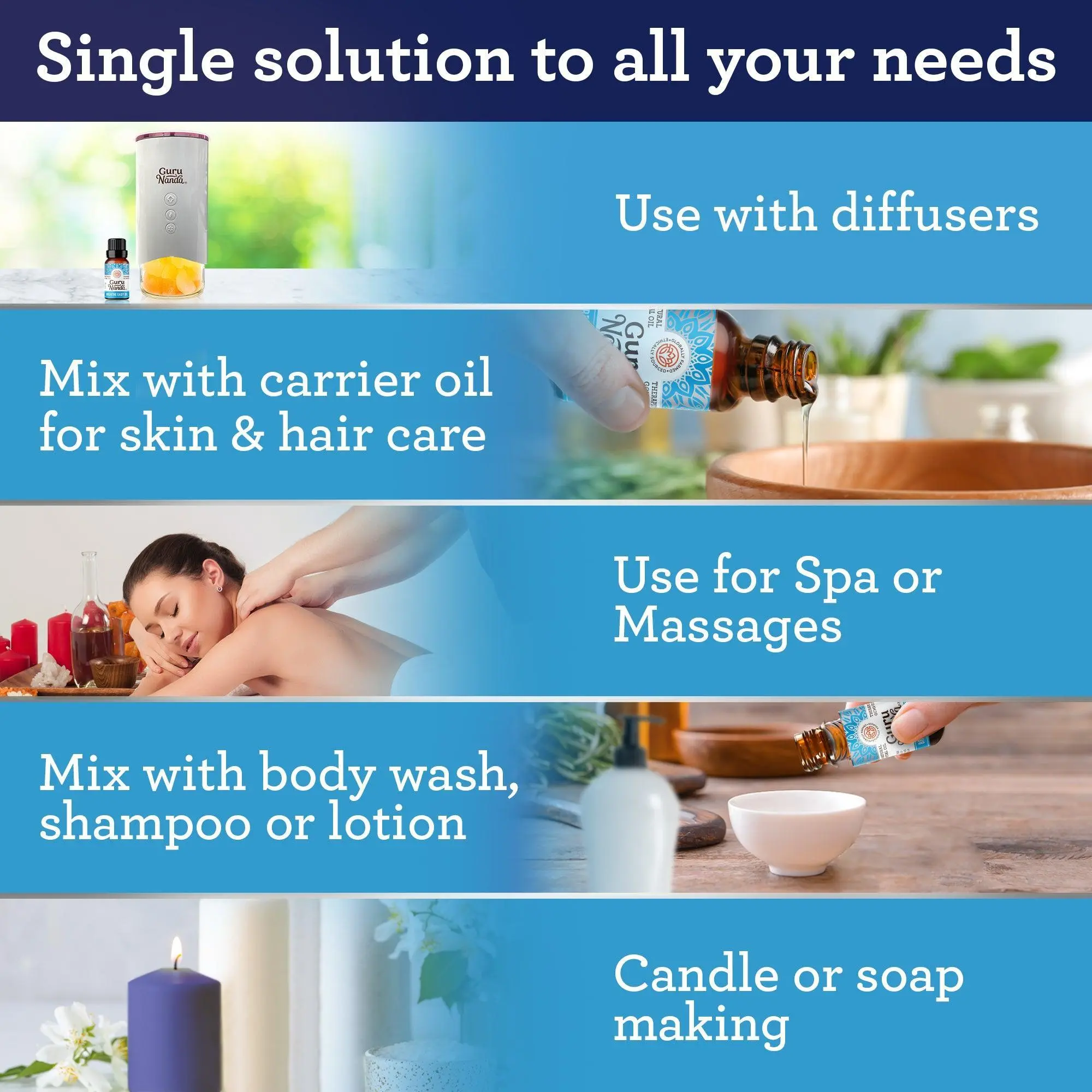 COMFORTING AROMATHERAPY:Use with your favorite GuruNanda Essential Oil Diffuser to create an aromatic paradise at home, office, or while traveling. Create a custom blend with a carrier oil for a refreshing massage.