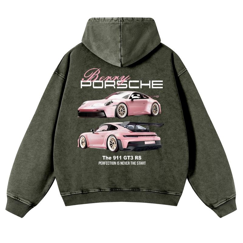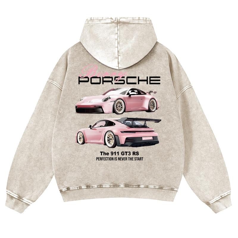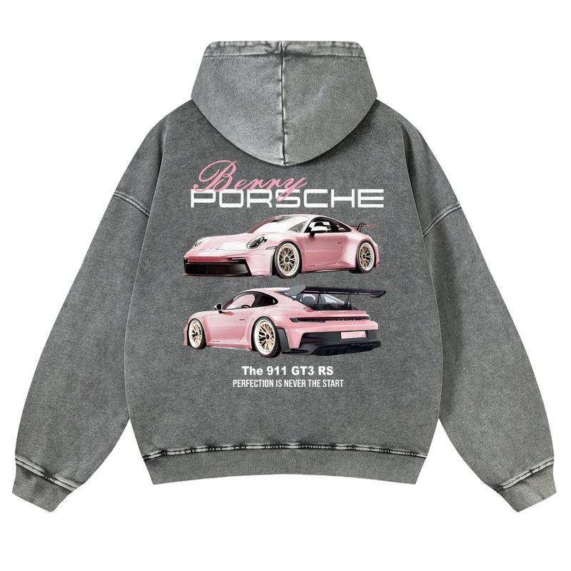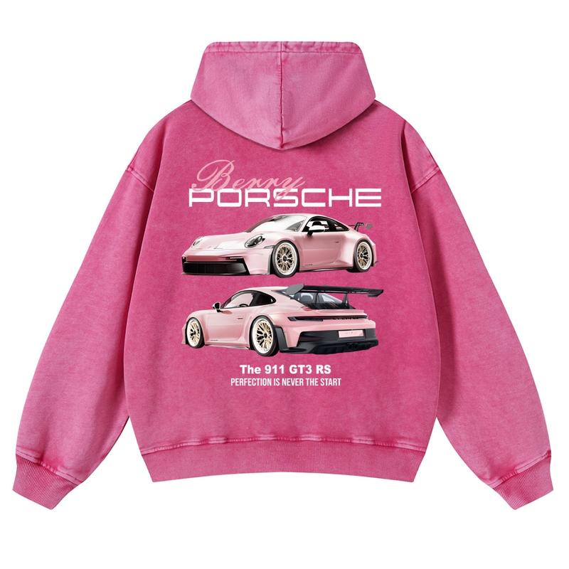 Breey Pink Car 380g Autumn VIntage Washed Hoodie Graphic Sweatshirt