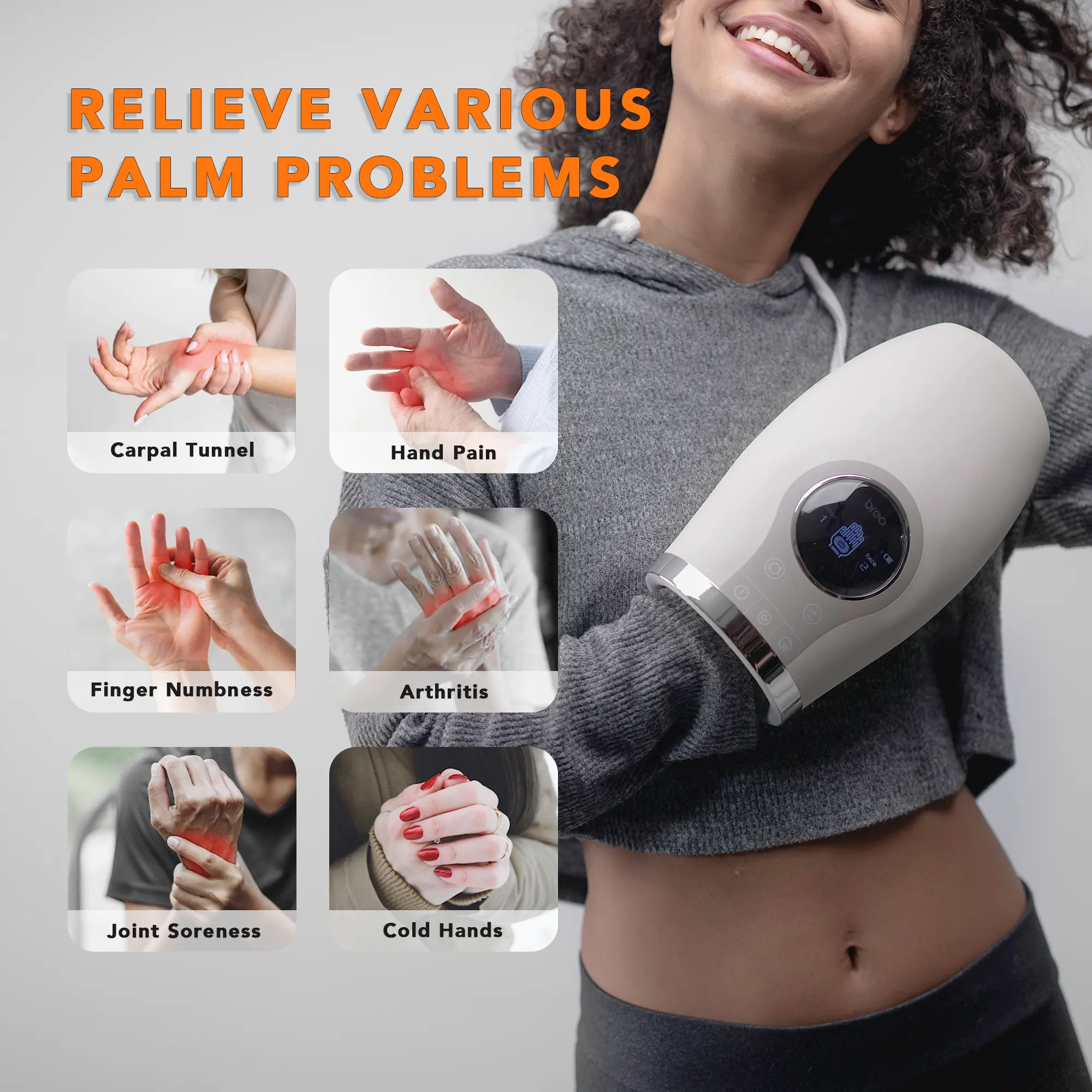·The WOWOS combines pressure and heat technology to relax the acupoints with a waving rhythm. Relieving the hand & fingers of pain and cold.