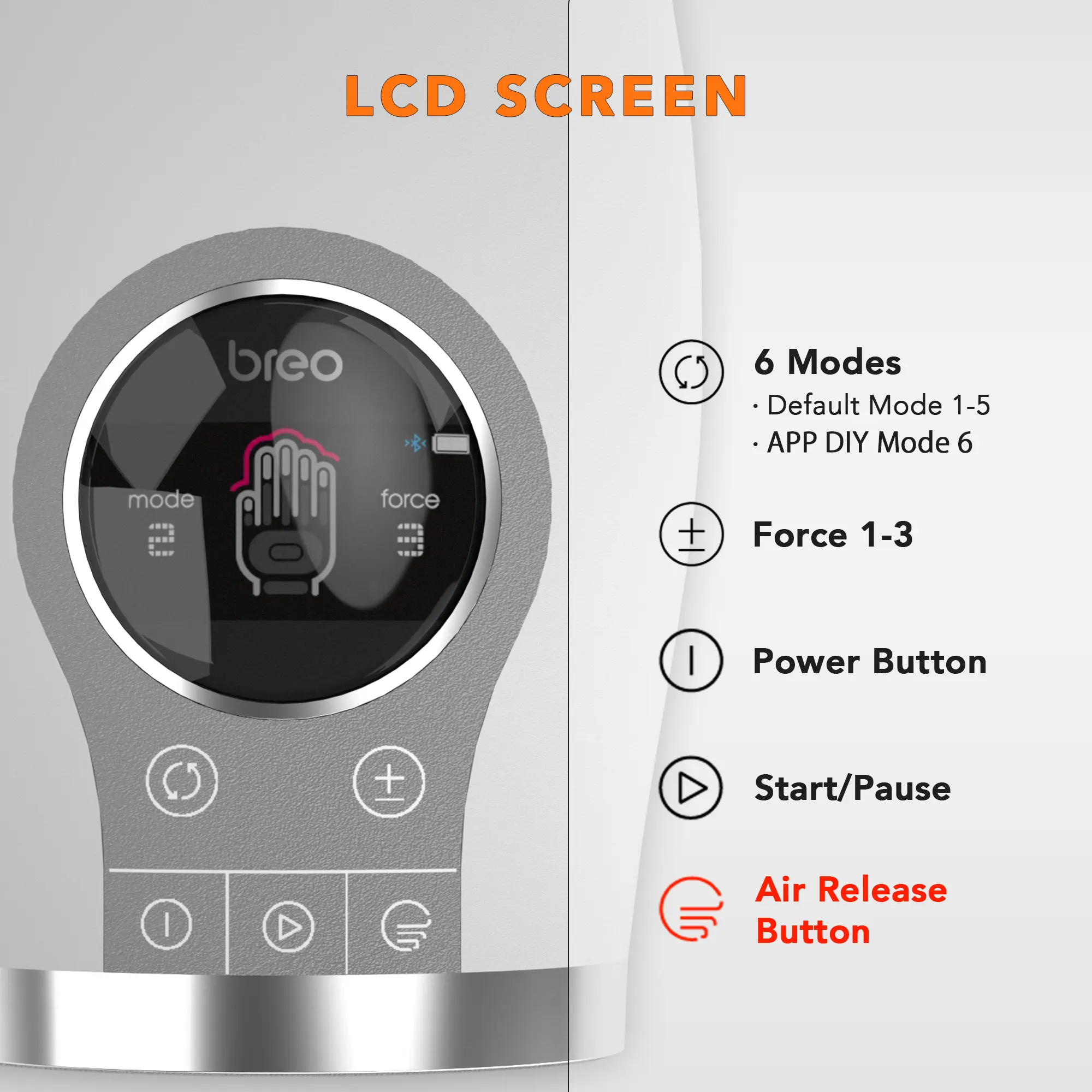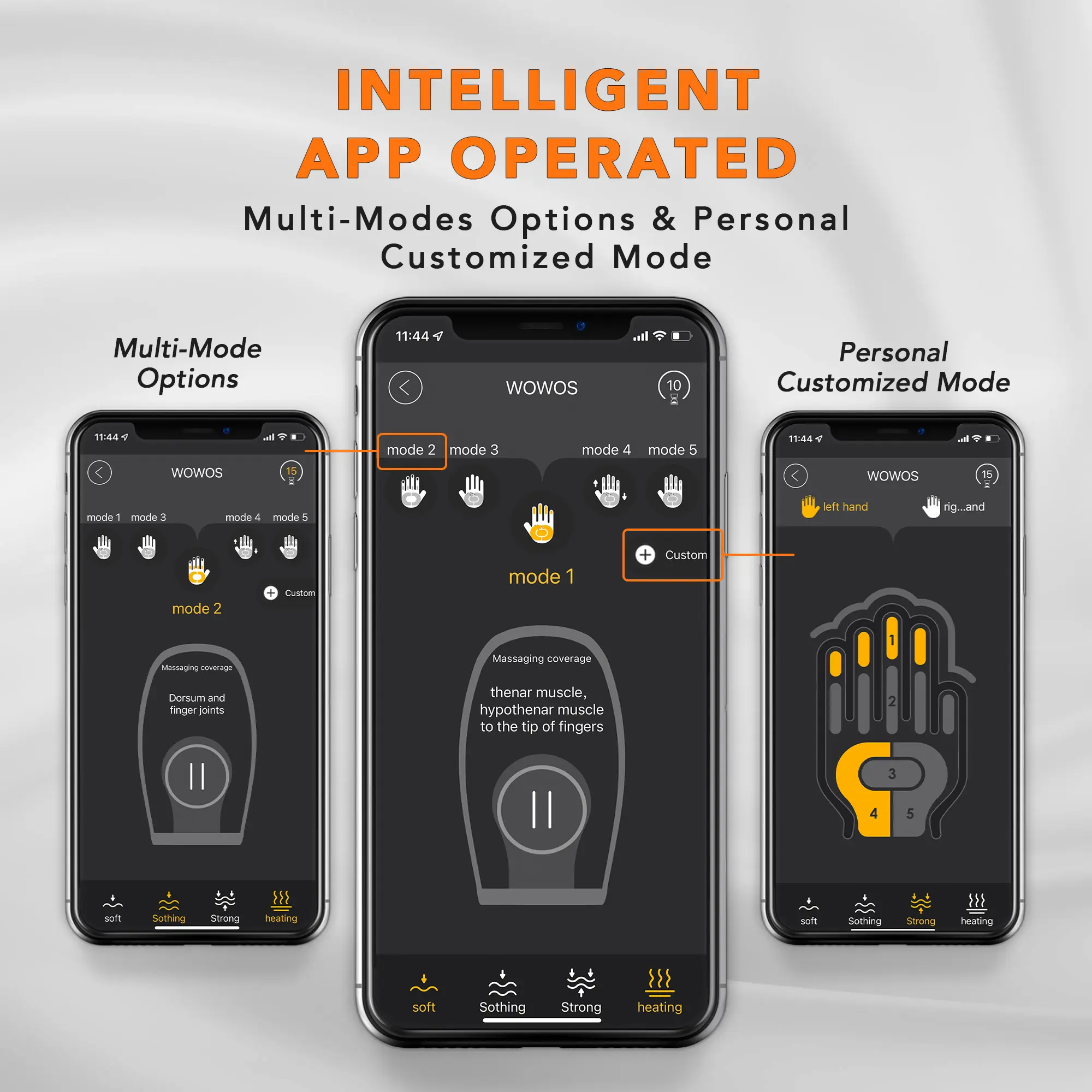 ·You can personalize your WOWOS by using Breo APP, 5 default massaging modes aligned with 3 different intensities and the customizable mode can be set as you wish.