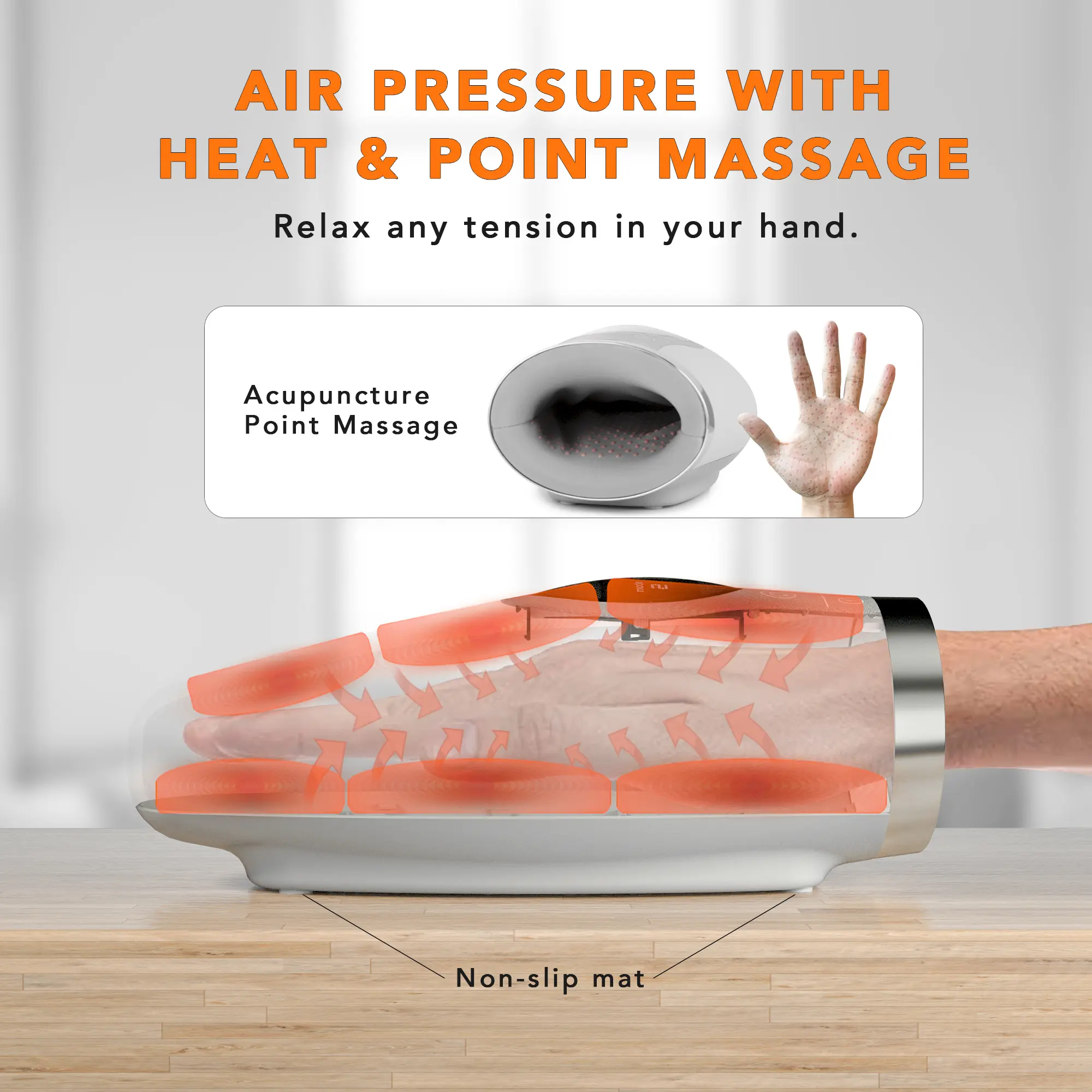 Daily relax with heating function to relieve hands fatigue & soreness, and promote relaxation.