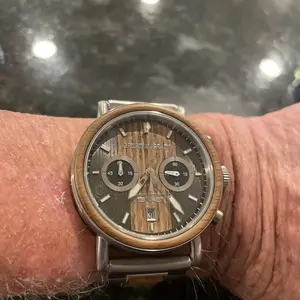I’m absolutely in love with it. The wood features are gorgeous, the weight feels great on my wrist, I was pleasantly surprised to see glow in the dark details.
