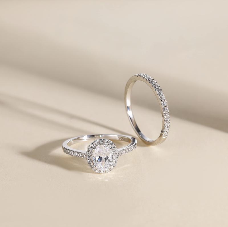 This set is absolutely mesmerizing!! I brought it so i wouldn't damage my past own mother in law ring. We got married on her birthday and it was such a honor. I got this to wear at work and thinks it's my wedding ring and loves it Perfect fit not big and clunky but slim and elegant.