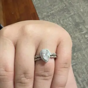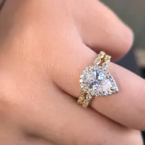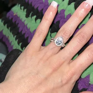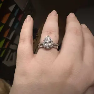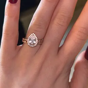 ·♥ Stylish ♥ The vintage silver ring set include a 1.25 ct pear-cut halo CZ wedding band and an eternity dainty milgrain ring. This women wedding ring has a 5-Prong-Setting craft to prevent the CZ stone fall off, and both sides of the halo engagement ring features some sparkling petite CZ stone to complement the center cubic zirconia stone