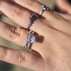 ·♥ Stylish ♥ Simple and timeless design, it could be worn at any time, and never goes out of style. This simple fake diamond ring has a classic 4-Prong-Setting craft to prevent the stone from falling off, and features a half circle of sparkling artificial diamond to complement the center zirconia stone