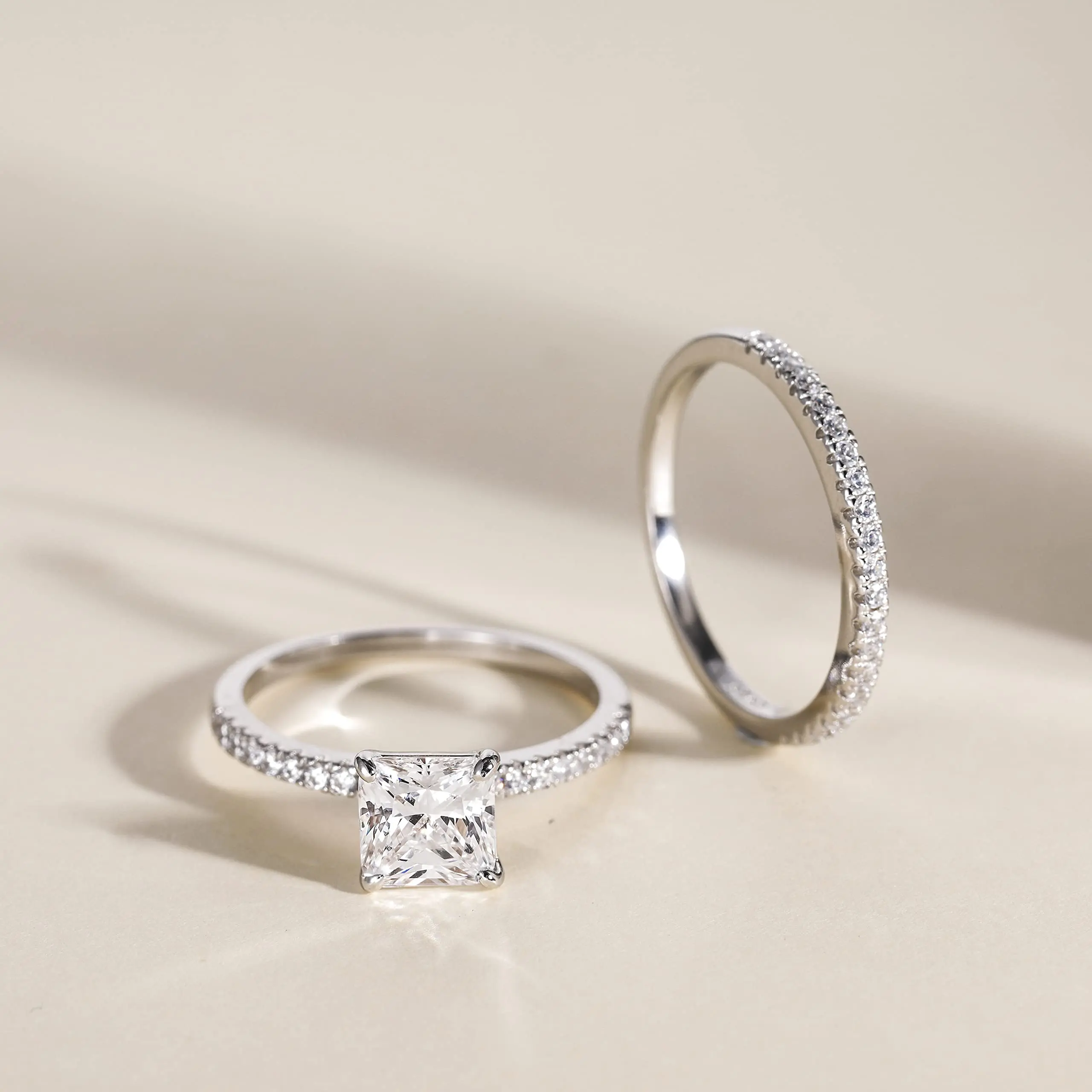 ·Specification: CZ wedding ring sets crafted in solid 925 sterling silver, stamped 925, hand-set and high-quality cubic zirconia stones are sparkly