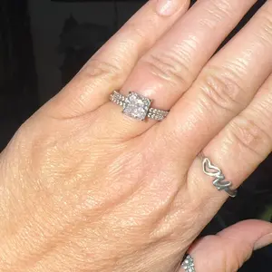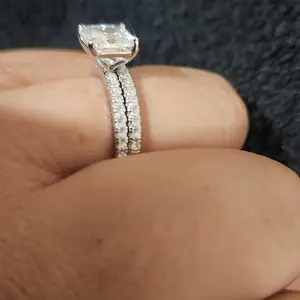 ·Stylish: The simple silver ring set include a 2 ct halo CZ wedding band and an eternity dainty ring. This womens wedding band has a 4-Prong-Setting craft to prevent the CZ stone fall off, and both sides of the halo engagement ring features some sparkling petite CZ stone to complement the center cubic zirconia stone