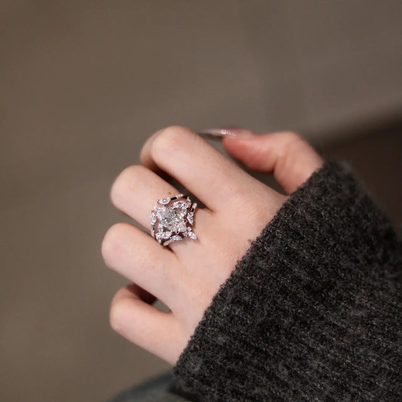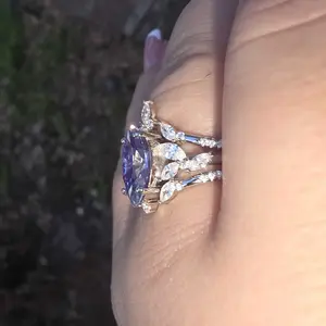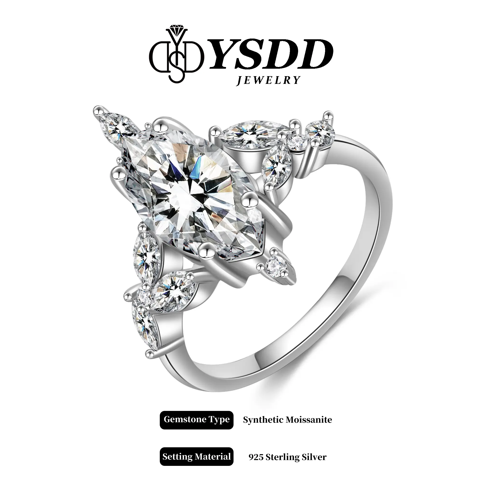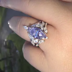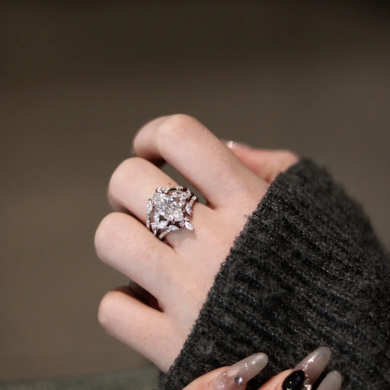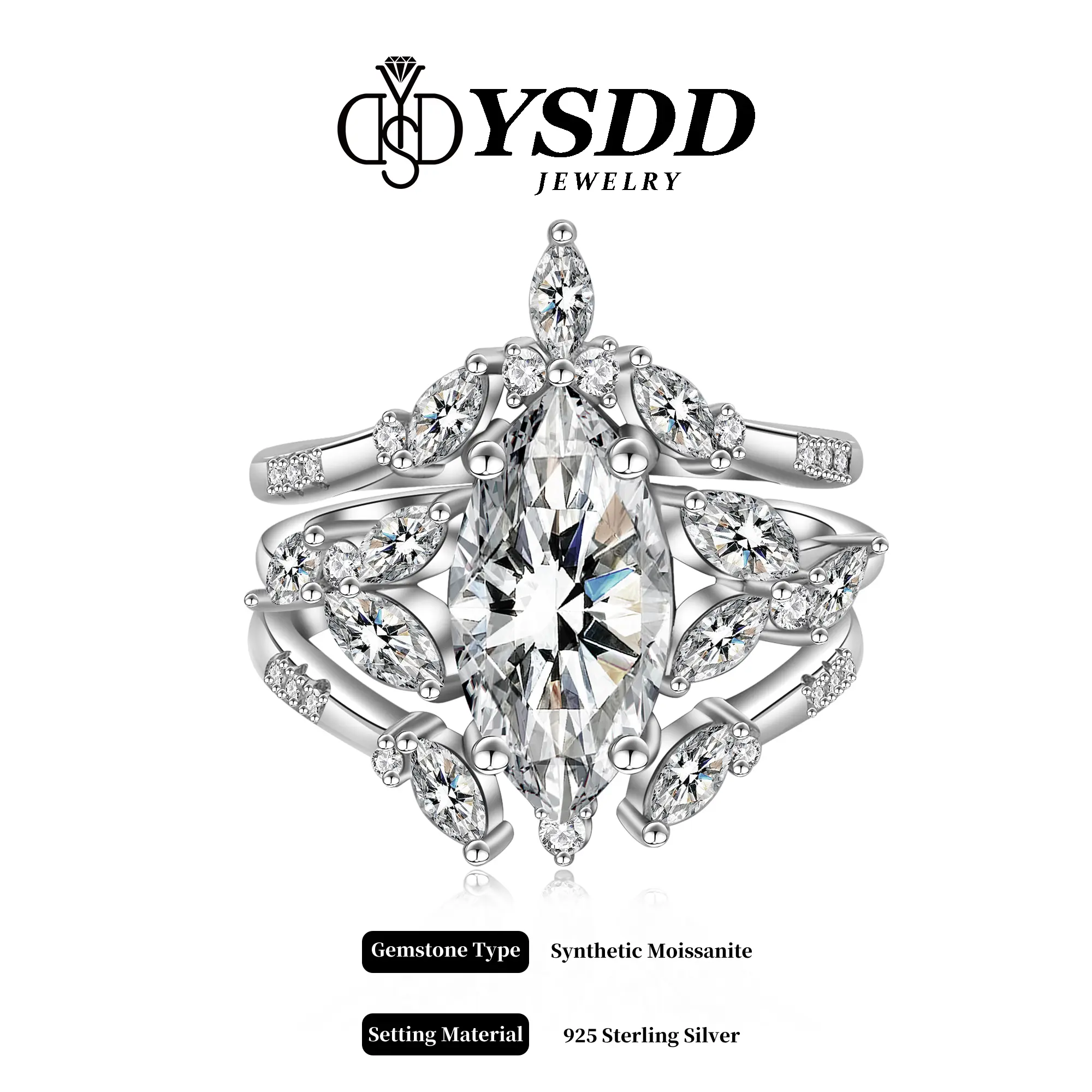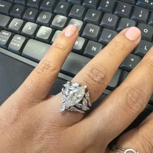 ·3ct marquise bridal set. The marquise cut center stone is synthetic moissanite, and 925 sterling silver whole ring, pear-shaped zircon stones (5AAAAA) around, and 925 sterling silver setting all contribute to its stunning appearance.