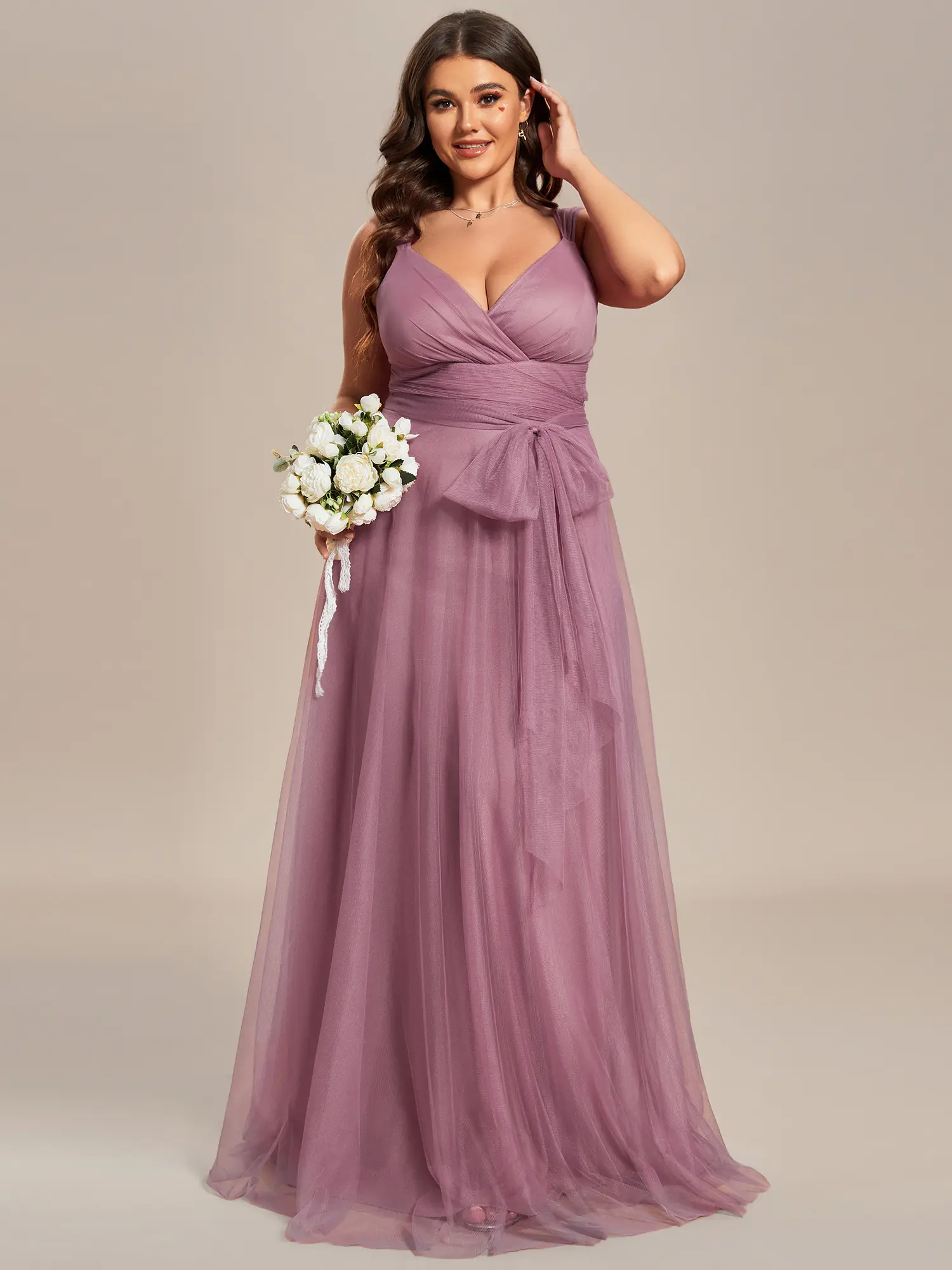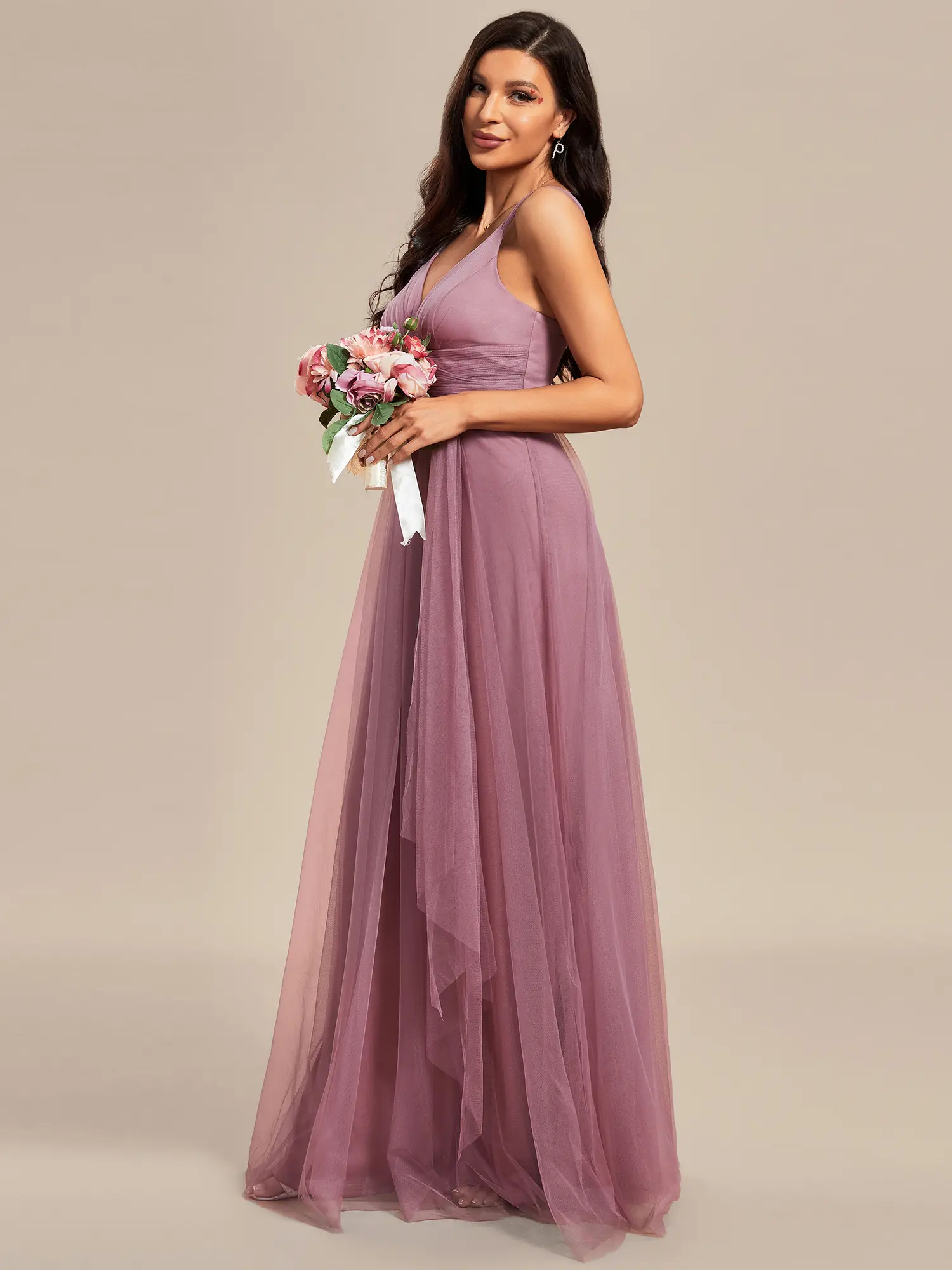 ✨ Ever-Pretty Floor Length Double V Neck Tulle Bridesmaid Dresses ✨