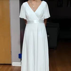 Actually pretty good quality for price. Only thing is that you can’t zip this one up alone! I’m a bigger girl so 5’3, 220lb with an DDD 36 and got a size 18. Fits snug but good enough to move around, pic is for length reference.