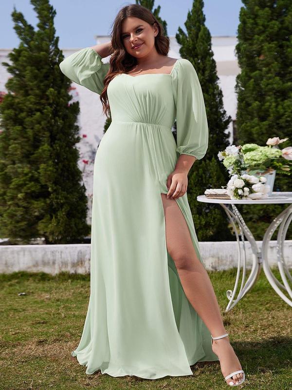 Ever-Pretty【Plus Size】 Fall High-Slit Waist Pleated Bridesmaid Dress with Long Sleeves for Women's Wear Comfort 0002 bridesmaid dress,wedding  dress,