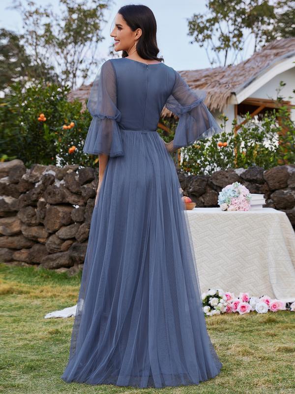 Ever-Pretty Lantern Long Sleeve Split Maxi Bridesmaid Dresses S0003 Garment Style