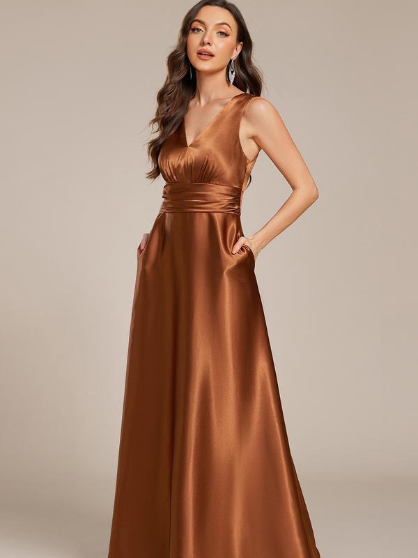 5. Ever-Pretty 2026 Valentine dress Evening dress V-neck Empire Waist Satin Maxi Bridesmaid Dress with Pockets 02326 Comfort,party dress,Valentine dress Spring Evening dres