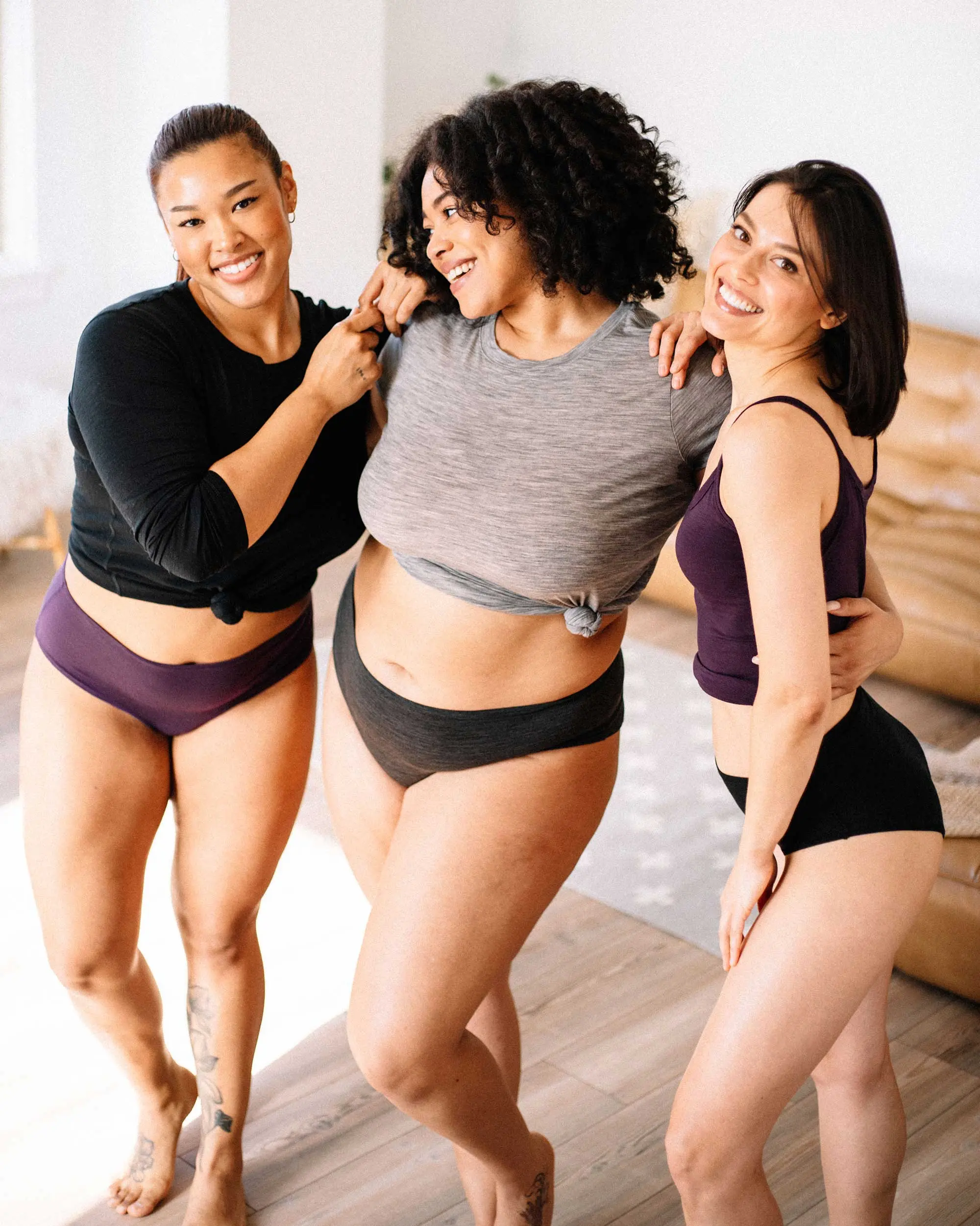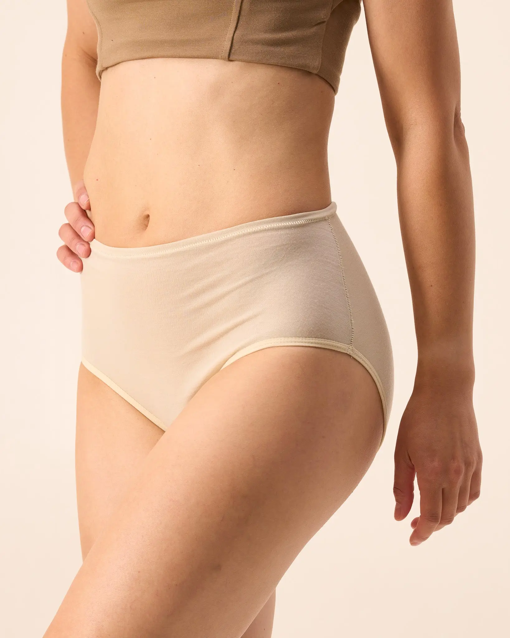 Womens undies from Woolly are the best. They are super comfortable and are terrific for travel. I own three styles. Boy shorts. Very comfy and good with jeans, regular bikini good with everything and these, the high waisted panty, are my favorite. They fit over the tummy and stay in place if wearing a tighter pair of pants.