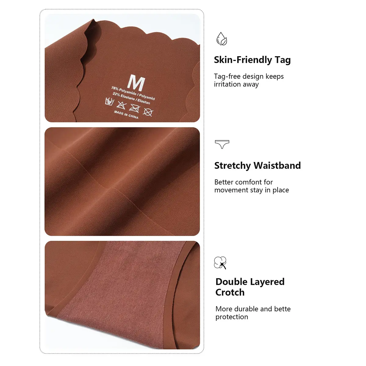 [Senseless label design] Women's briefs seamless underpants adopt label free design to avoid label contact with skin and increase underwear comfort.