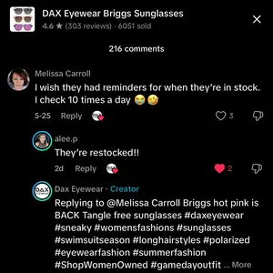 I was so excited when the pink came back in stock. I only wore them a few times before they broke while cleaning the lenses. At first I thought the lense just popped out but then realized the frame completely cracked. I’m pretty disappointed in the quality and the waste of money.