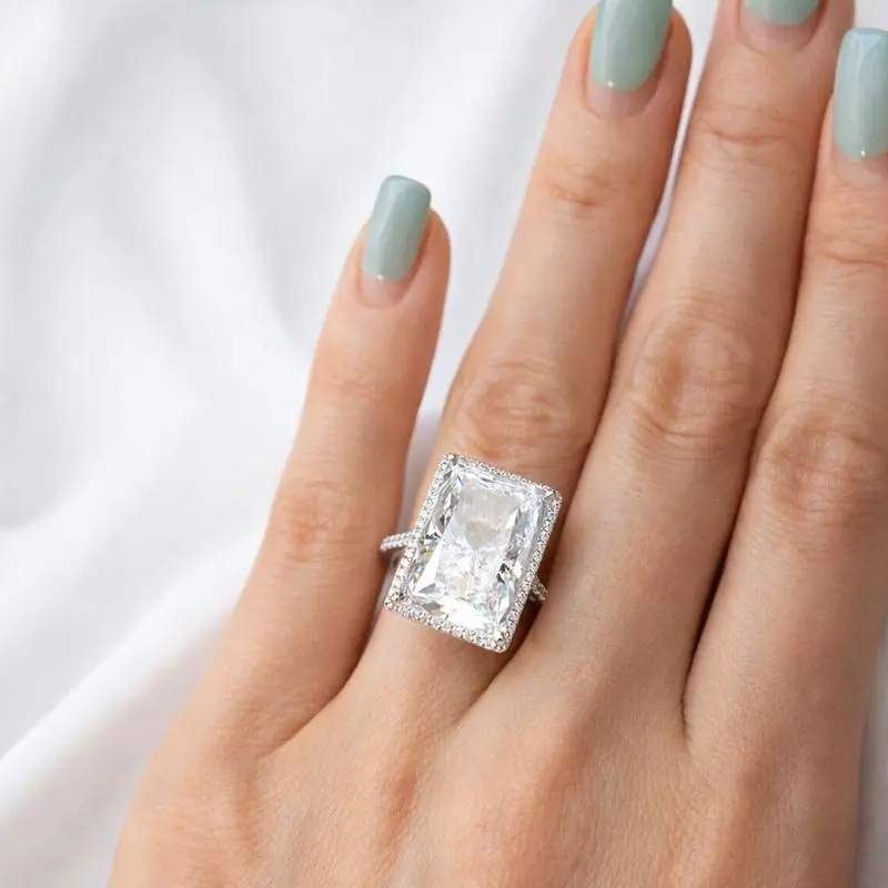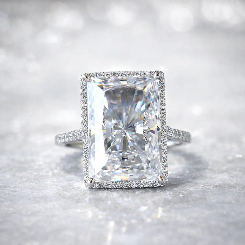 ·Material: Luminous rectangular main stone + surrounding shimmer accents + sleek silver-toned metal