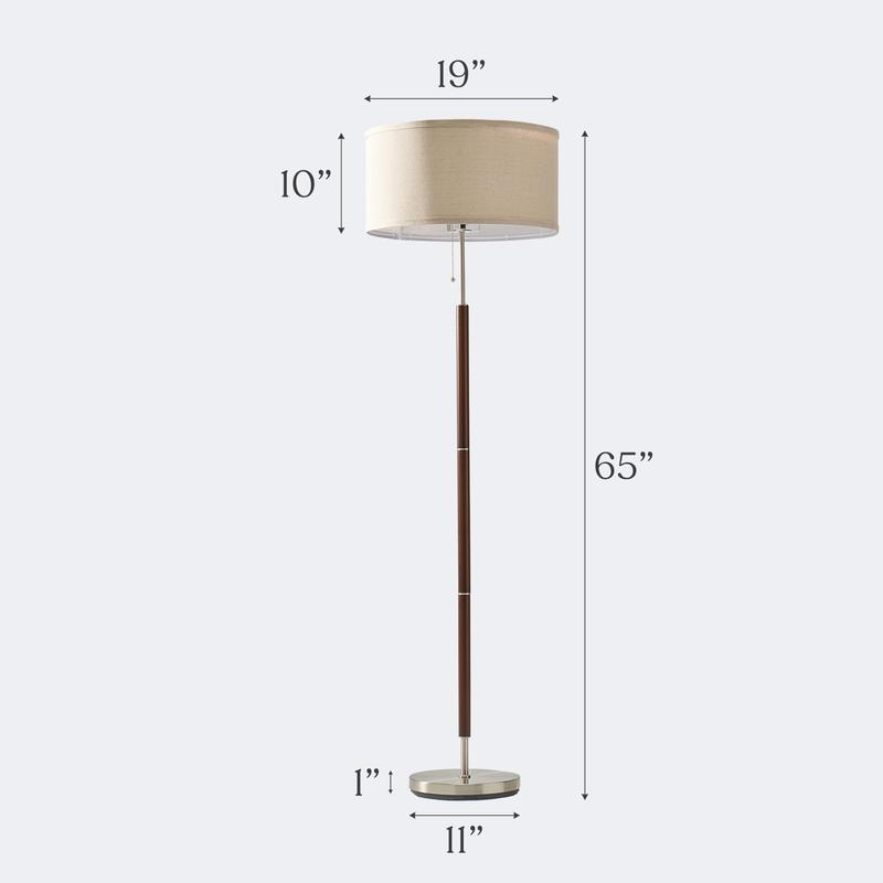 ·Lamp With Gorgeous Cylindrical Lampshade: The Carter Floor Lamp’s tall, cylindrical lamp shade measures 10 inches in height and 19 inches in diameter. It looks perfect above the Wooden Walnut finish stem. A sturdy, weighted base brings the whole design together. The cylindrical lampshade opens at both the bottom and the top to illuminate any room with a calm, ambient glow. Because this lampshade comes in neutral tones, it’s easy to place among other décor styles.