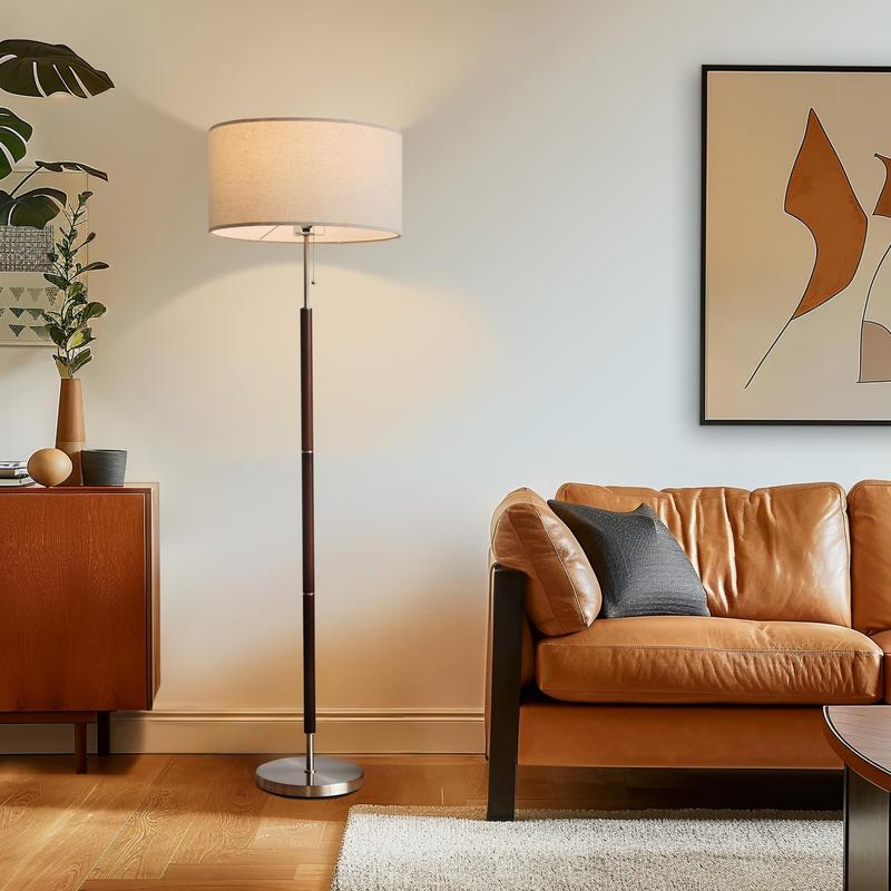 ·Decorative Floor Lamp for Any Living Room Decor: The Carter standing lamp will turn your bedroom, office, or living room into a space of elegance. This tall lamp features a neutral linen drum lampshade that works in perfect unity with the walnut wood finish stem and silver accents. A weighted base ensures it will be hard to tip over, even with kids and pets running around.