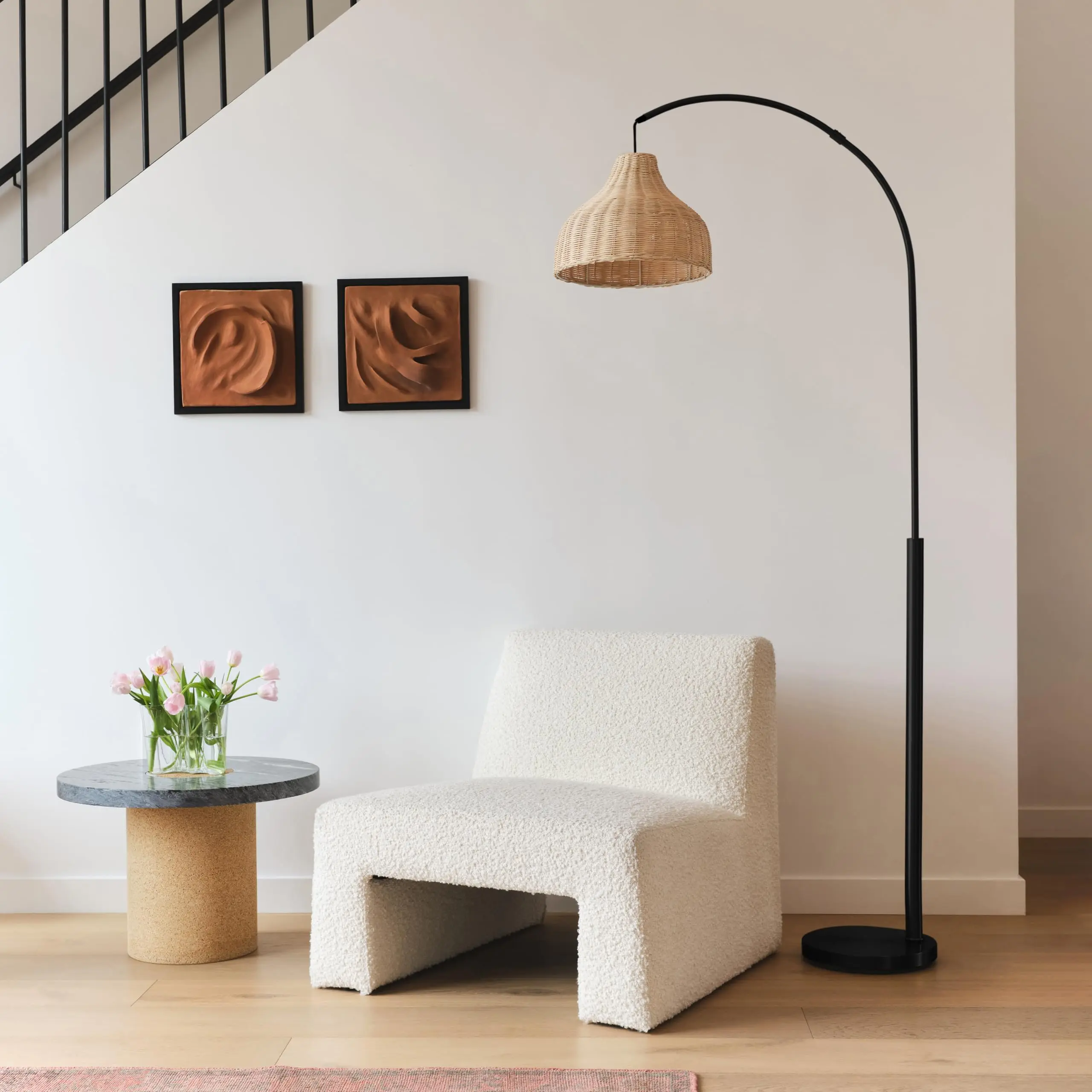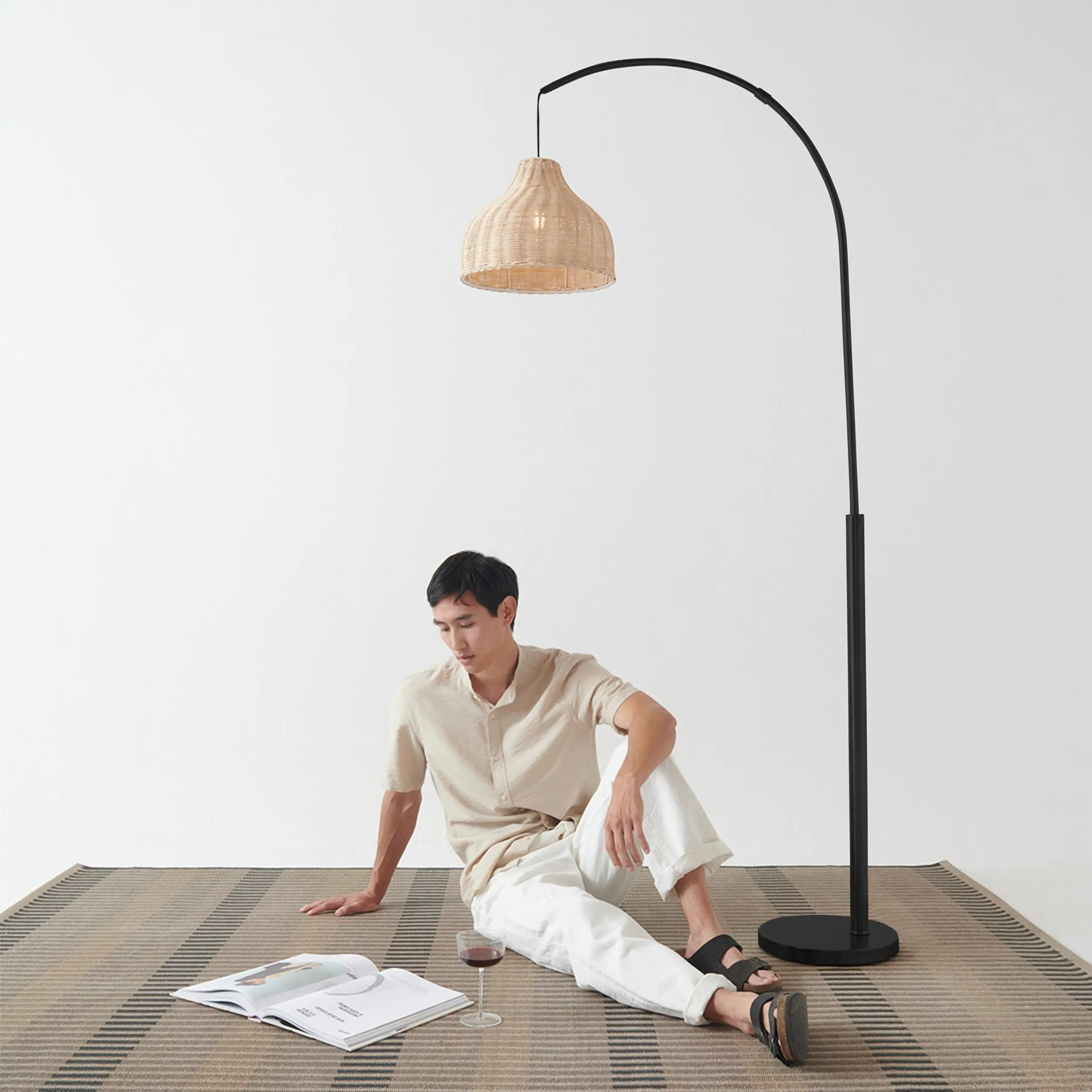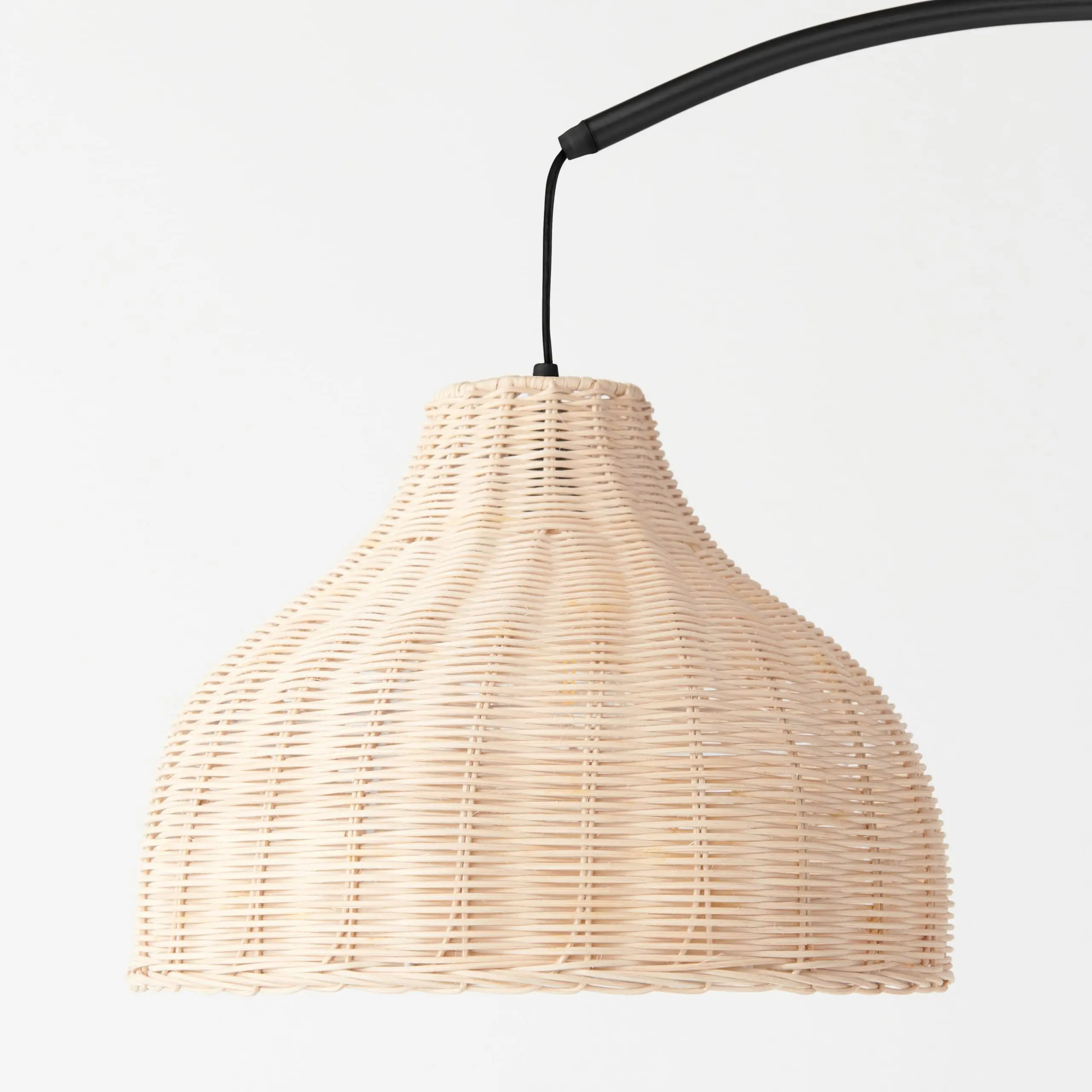 ·Unique Rattan Bell Lamp Shade measures 13 inches in diameter and 9.5 inches in height. It pairs beautifully with the black pole and base for a simple yet elegant design effect. The shade is open at top and bottom for both uplight and downlight diffusion of the warm light.