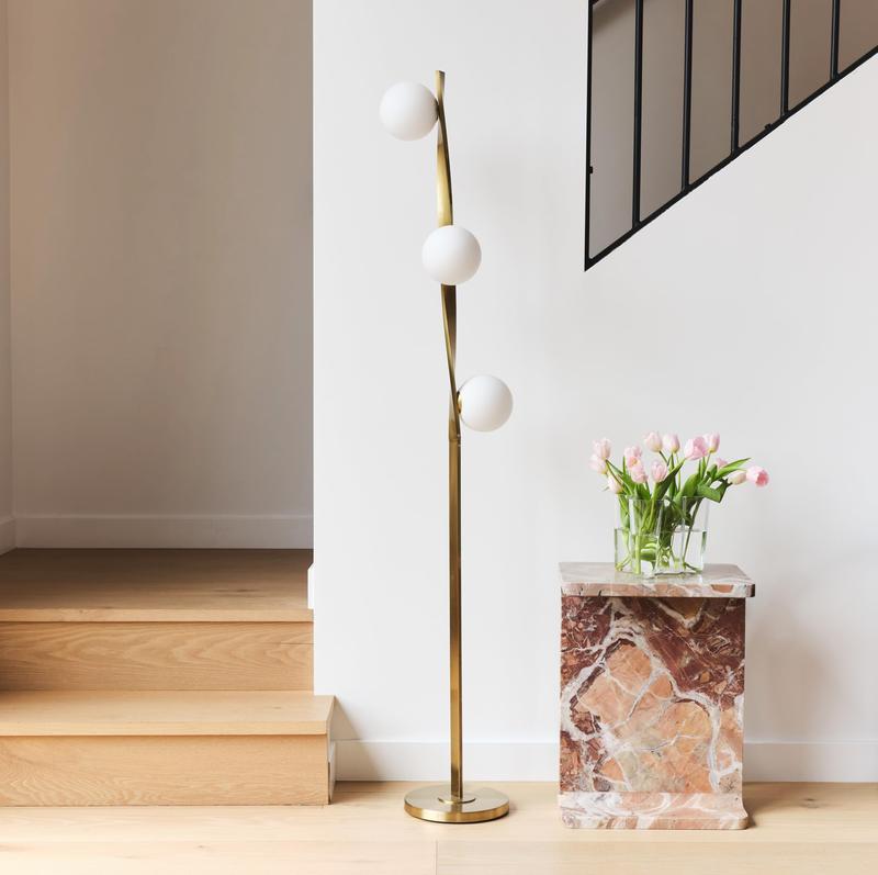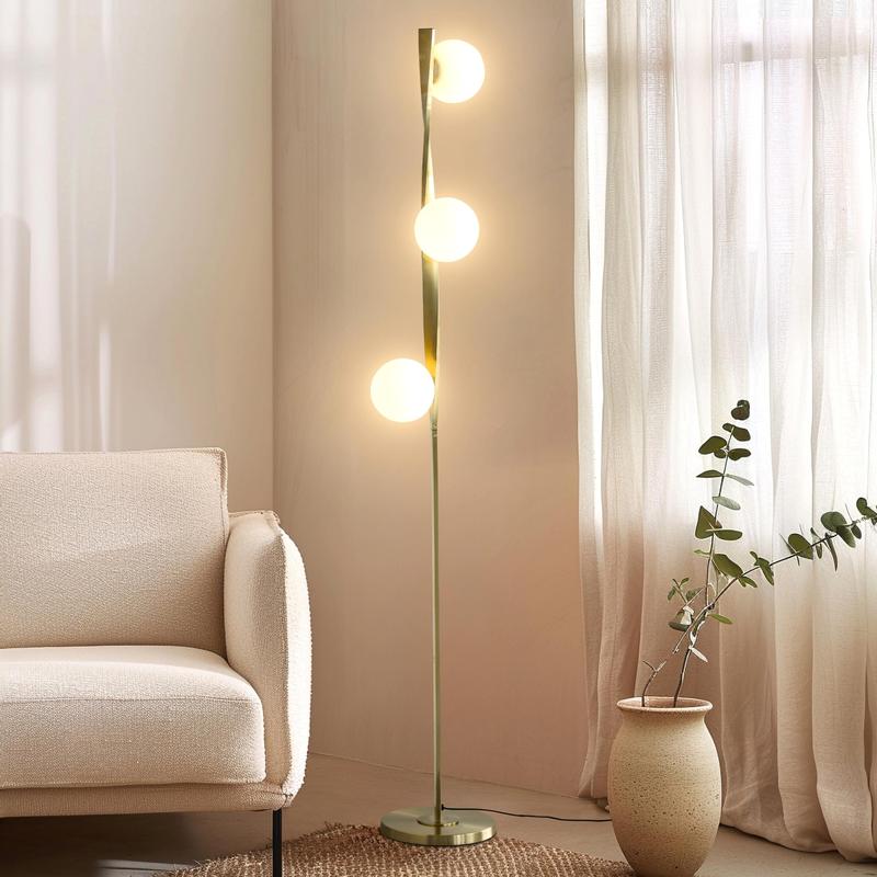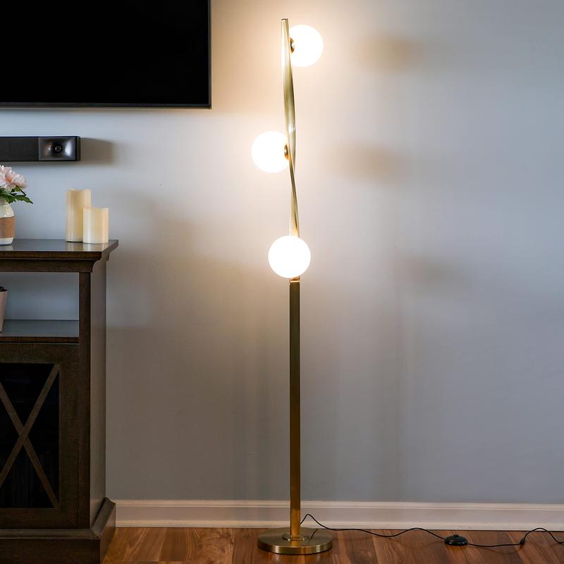 ·Stylish Living Room Décor: Choose the Brightech Nola to get a stunning modern look without paying a high price. The standing lamp features an elegant helical stem with simple globes to make any space feel upscale. It matches Asian, contemporary, modern, and mid-century décor. The gleaming gold finish on the floor lamp pairs beautifully with frosted diffusing shades for a sophisticated look to impress guests. The twisting fixture of the corner lamp stands about five feet tall.