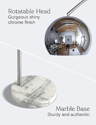 ·Contemporary Arc Floor Lamp: The Brightech Olivia standing lamp comes with a 9” globe (aka “dome”) shade made from metal with a trendy chrome hue; this design works excellent with industrial, mid-century modern, and modern decoration themes. This arc-and-globe lamp shade and shiney chrome finish will elevate the level of elegance in your office and home, and your guests will not stop talking about it once they see it.