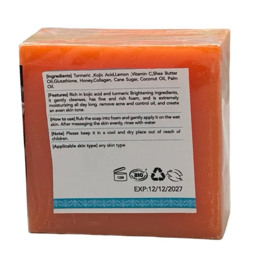 This tumeric and kojic acid soap brightens my skin with a gentle cleansing effect. Remove acne and control oil production. Has a rich lather. I love it.