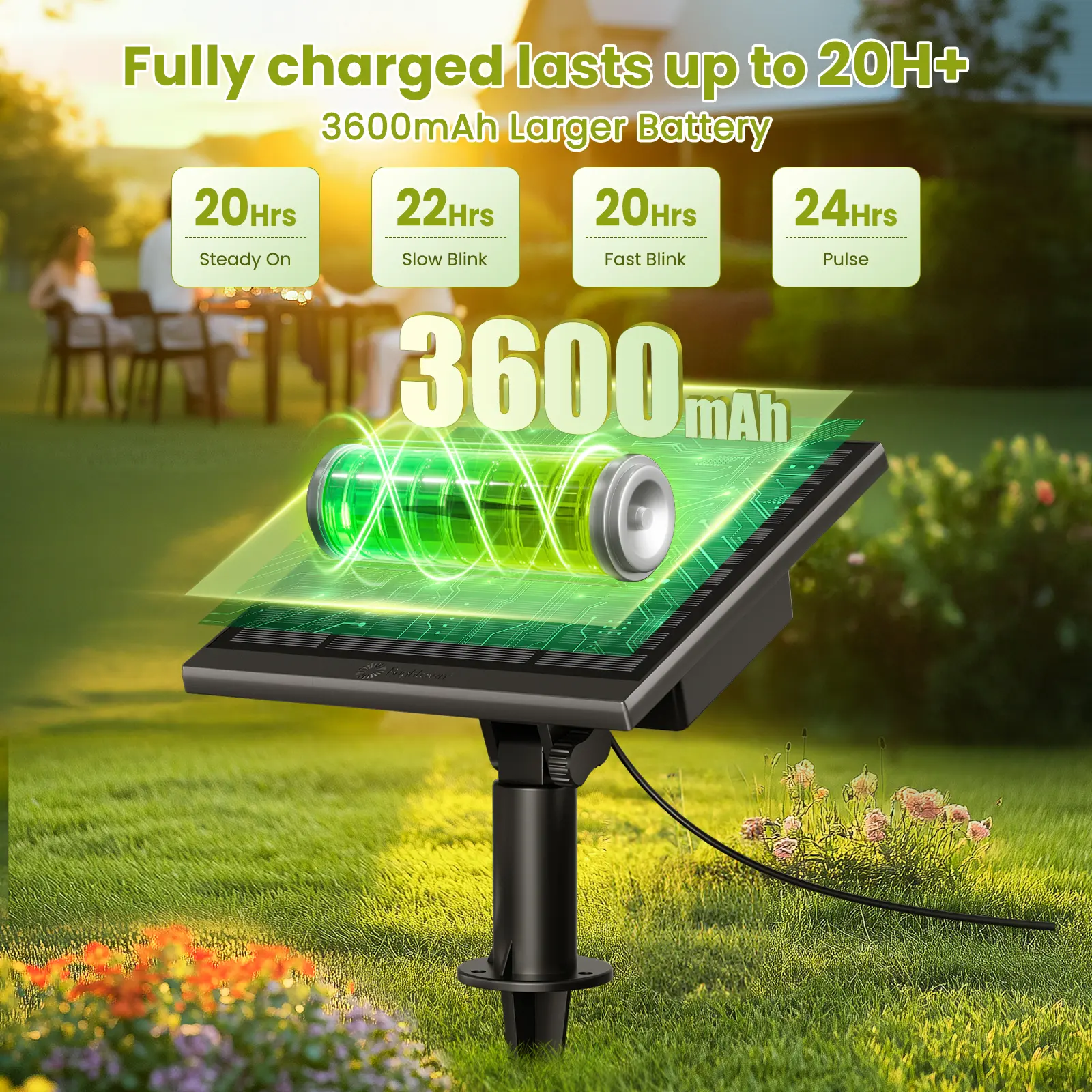 Automatic On/Off: Simply switch the button on the solar panel to the "On" position, and the outdoor waterproof solar lights will automatically charge in the sun. They will automatically turn on at dusk and turn off at dawn. Enjoy lower electricity bills without the hassle of constantly changing batteries. Please note that the solar panel has a built-in light sensor. If you need to use the solar lights during the day, just cover the solar panel with a black cloth.
