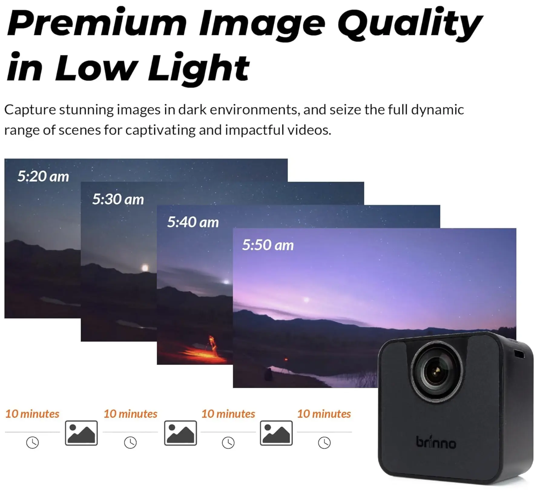 🌟 HDR Time Lapse Camera (TLC200Pro-BLE): This lightweight yet powerful camera features an image sensor identical to Brinno's legendary BCC200. It provides exceptional HDR effects during the daytime.