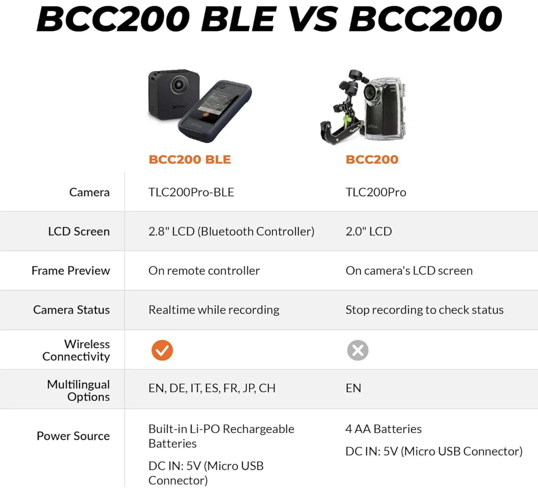 📏 Remote Control Range: Control everything remotely with a range of up to 33ft (10m) and up to 15 TLC200Pro-BLE cameras.