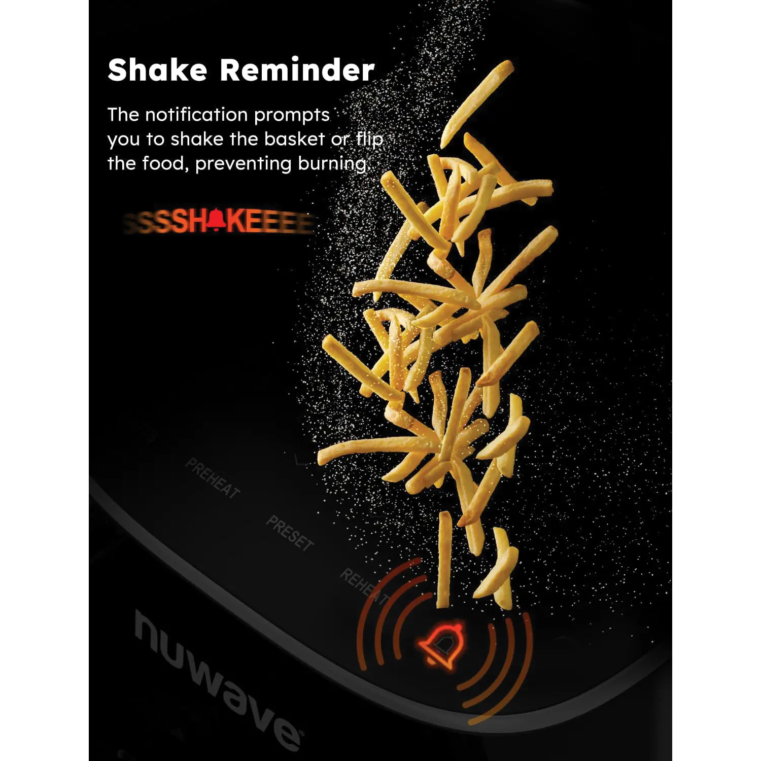 ·SAFETY BUILT-IN – When the air fry basket is pulled out (opened), cooking is paused for safety. Once the basket is pushed back in (closed), the cooking resumes automatically. The air circulation riser is also redesigned to fit very securely eliminating the chance of mishaps.