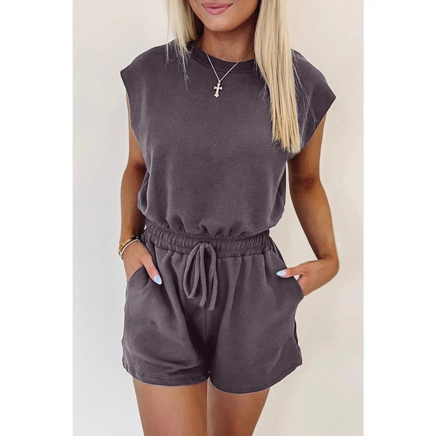 · Complete with convenient pockets, this romper seamlessly combines fashion and functionality.
