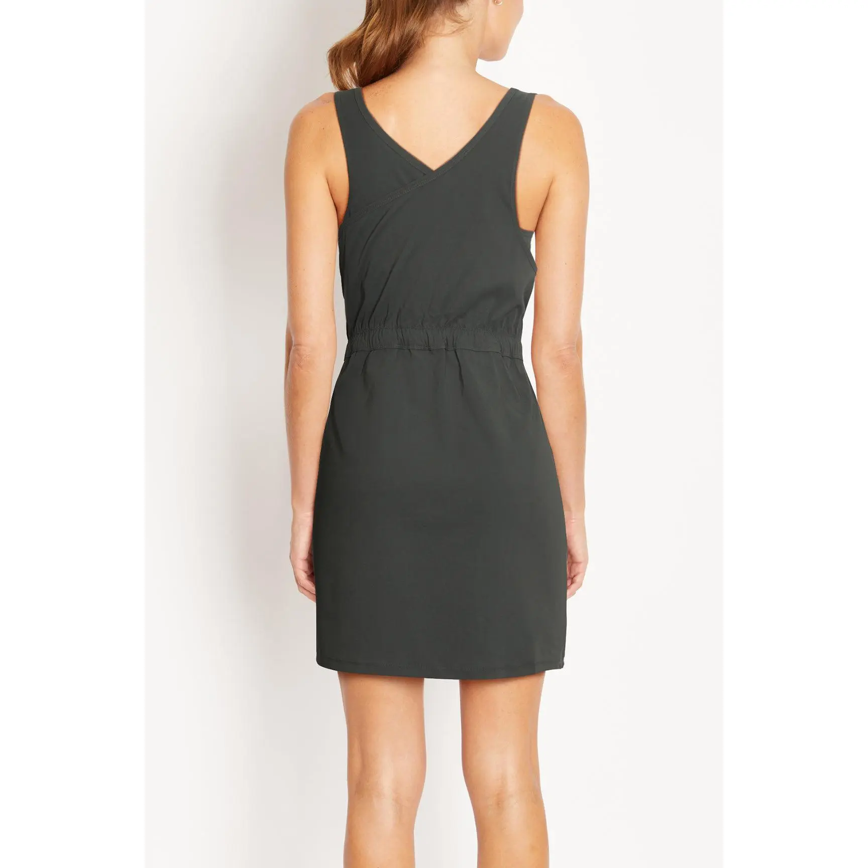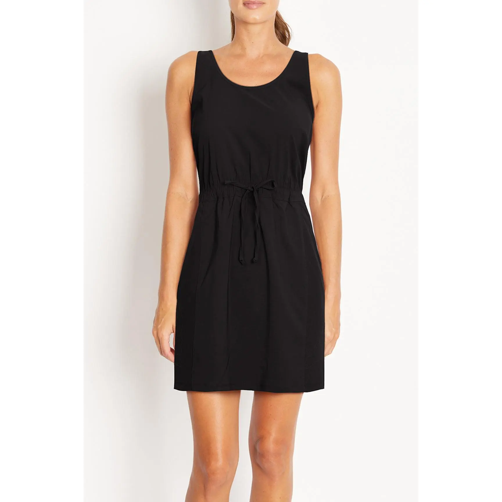I was disappointed in this dress and should have returned it. It’s very stiff and not stretchy. It’s made of quick drying material so that’s a plus, but prob something I won’t wear very often.