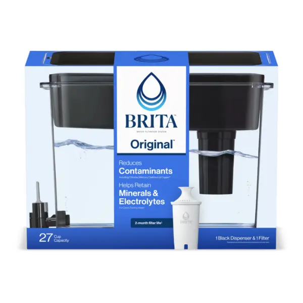 El dispensador UltraMax de Brita ofrece agua deliciosa y reduce el sabor y el olor a cloro. Este dispensador, imprescindible para el hogar, cuenta con un depósito de 27 tazas, lo que garantiza que siempre tengas agua filtrada y deliciosa cuando