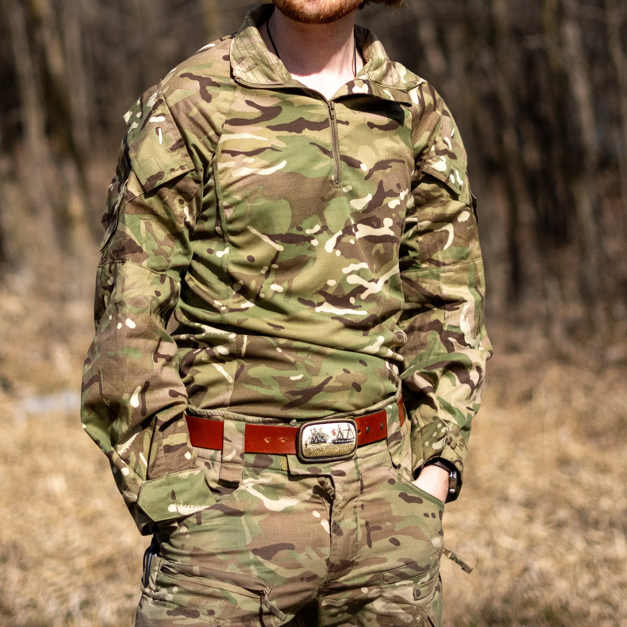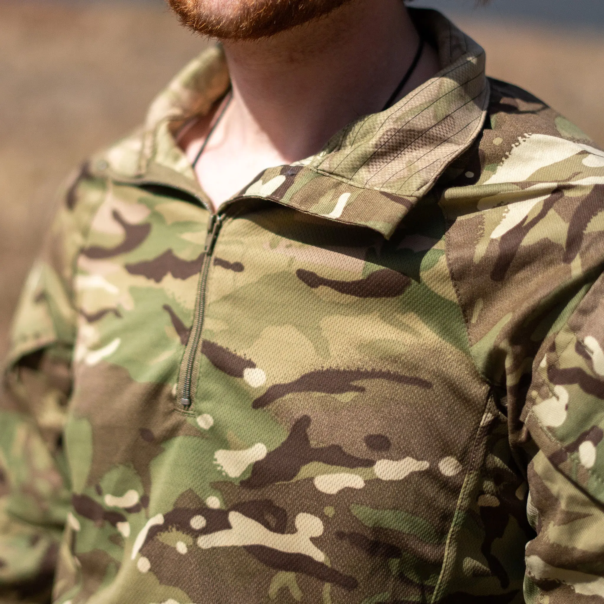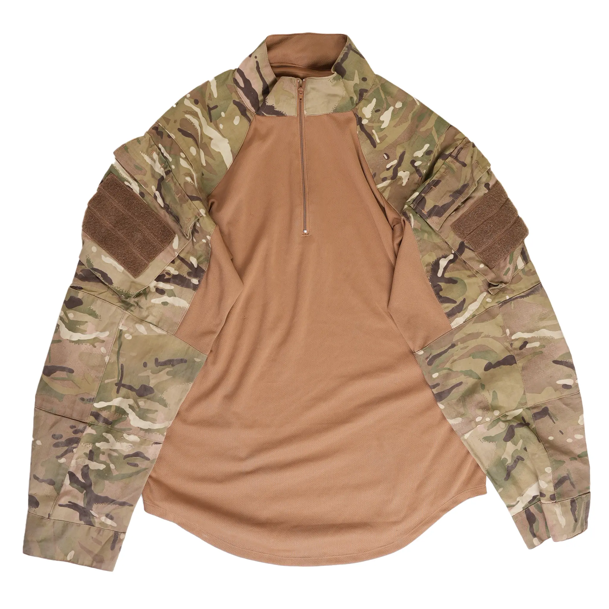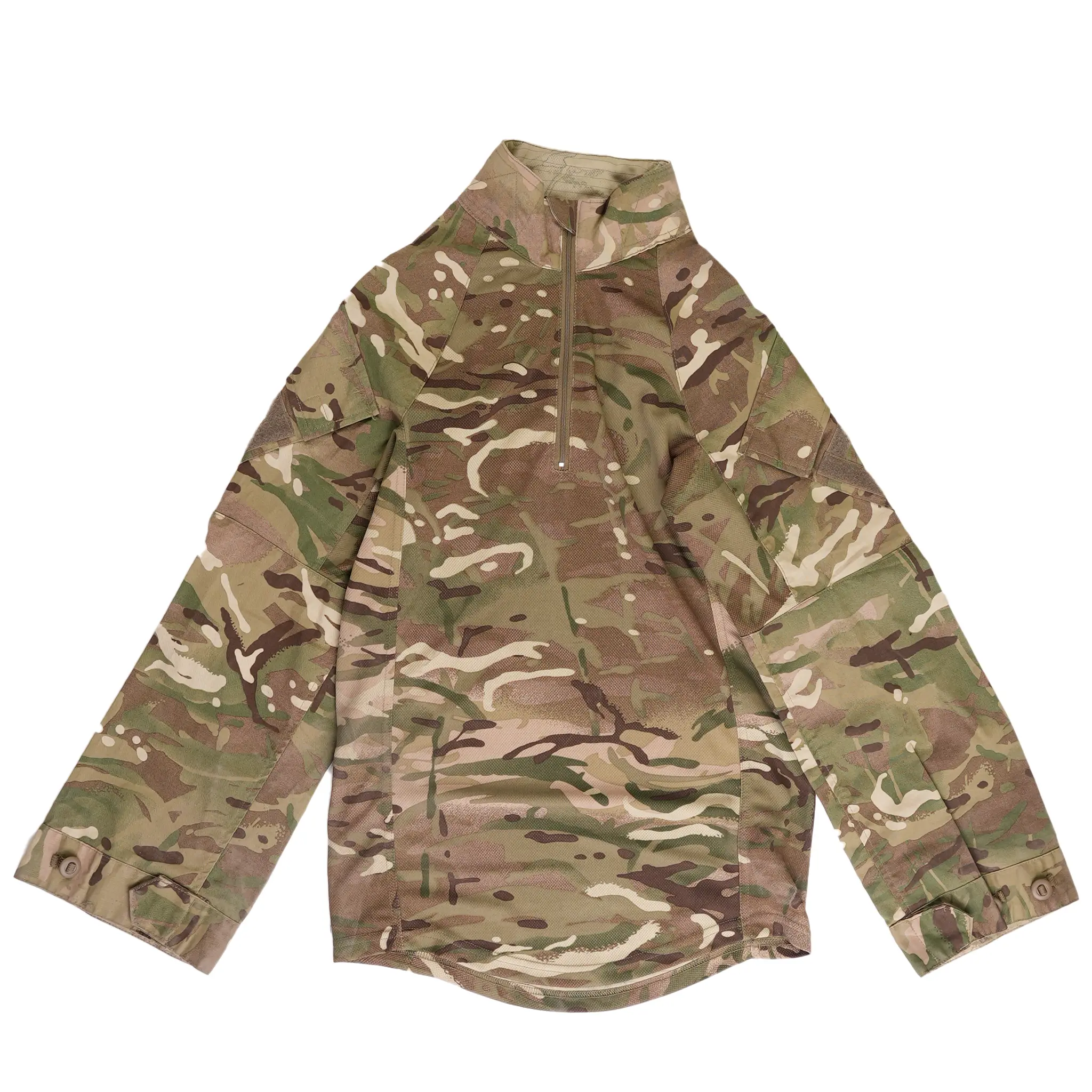The British MTP Under Body Armor Combat Shirt is specifically designed for efficiency and comfort under body armor. Constructed from durable, high-quality ripstop, it features a lightweight, breathable torso that reduces heat and moisture build-up, making it ideal for extended wear in challenging environments. The sleeves and external pockets are made of robust fabric in the MTP camouflage, providing both utility and concealment.