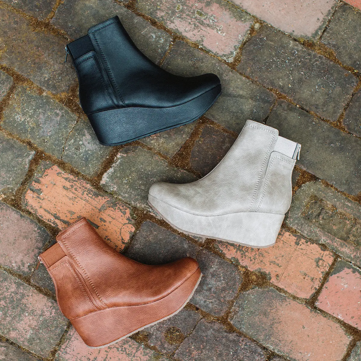 The BRITTANY wedge ankle boot is just as fashionable as it is versatile. This lightweight wedge bootie features a flexible elasticized collar and a convenient back zipper that helps the boot stay snug and in place.