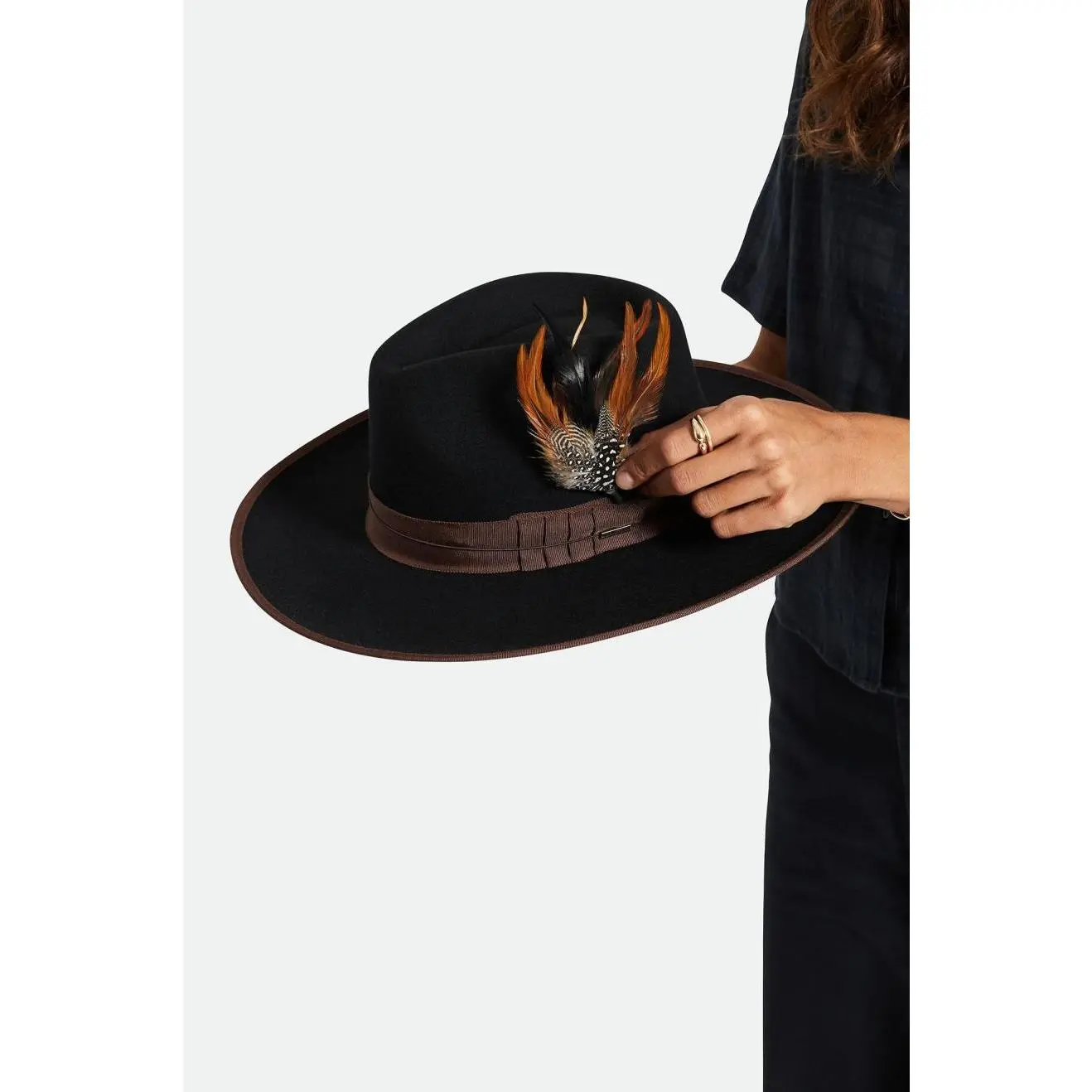 5. Brixton Hat Feather - Burnt Orange/Black/Mahogany